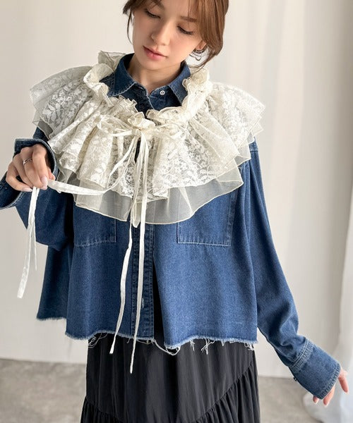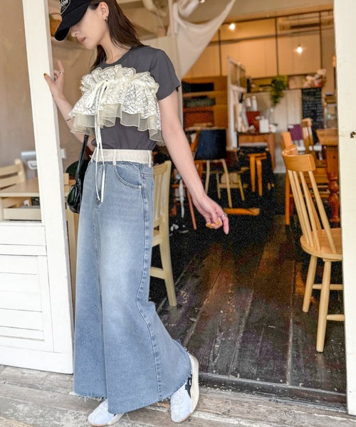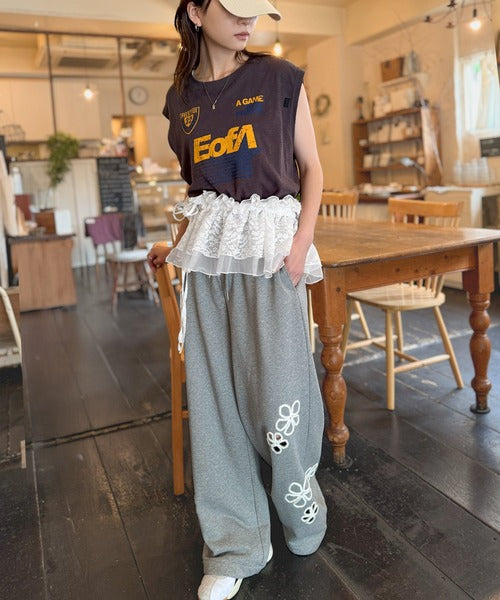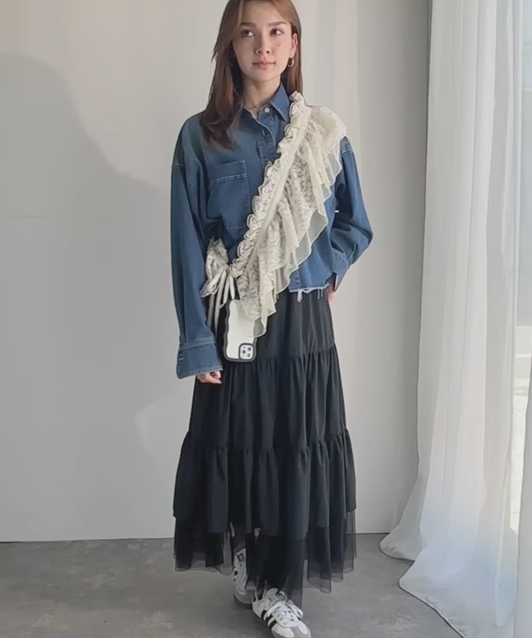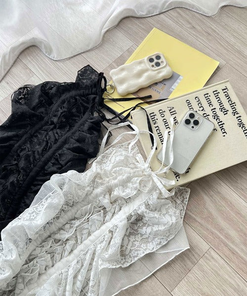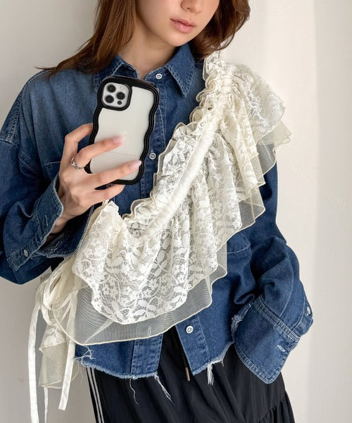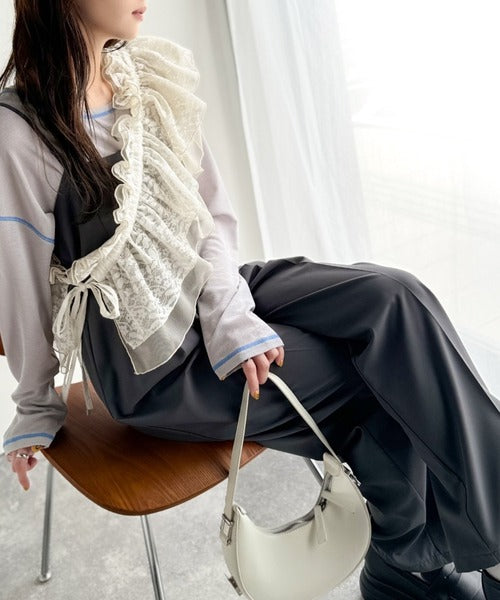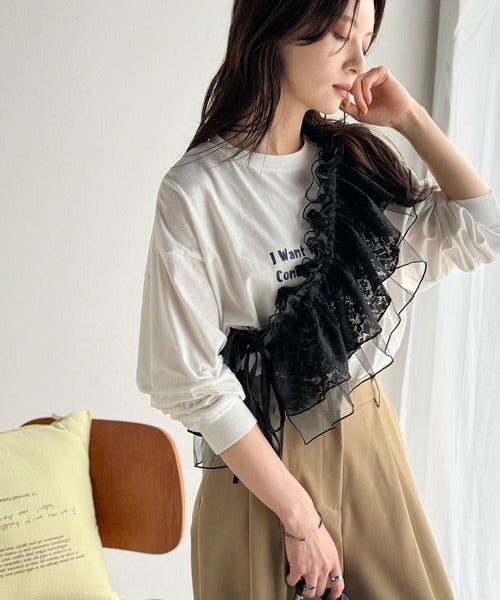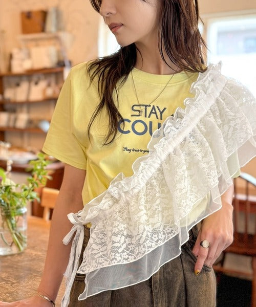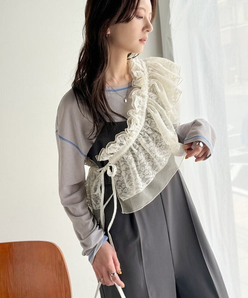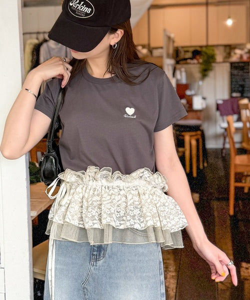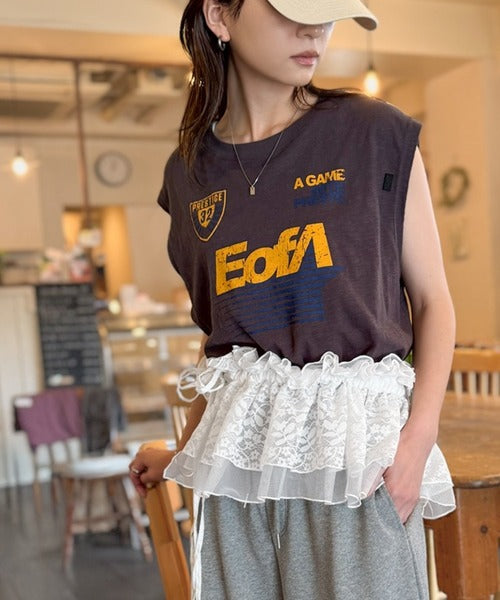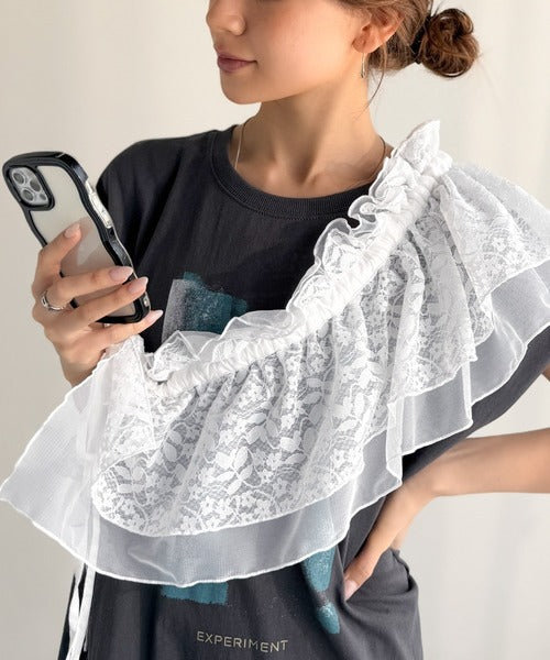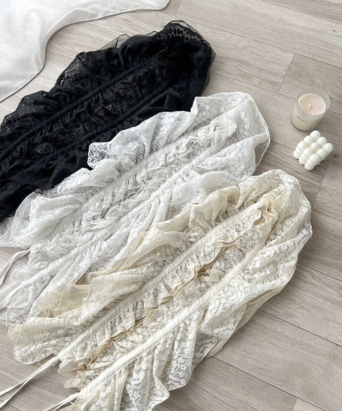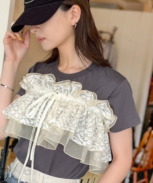 【素材】 レース部分:ポリエステル100% チュール部分:ポリエステル100% 布帛部分:綿100%