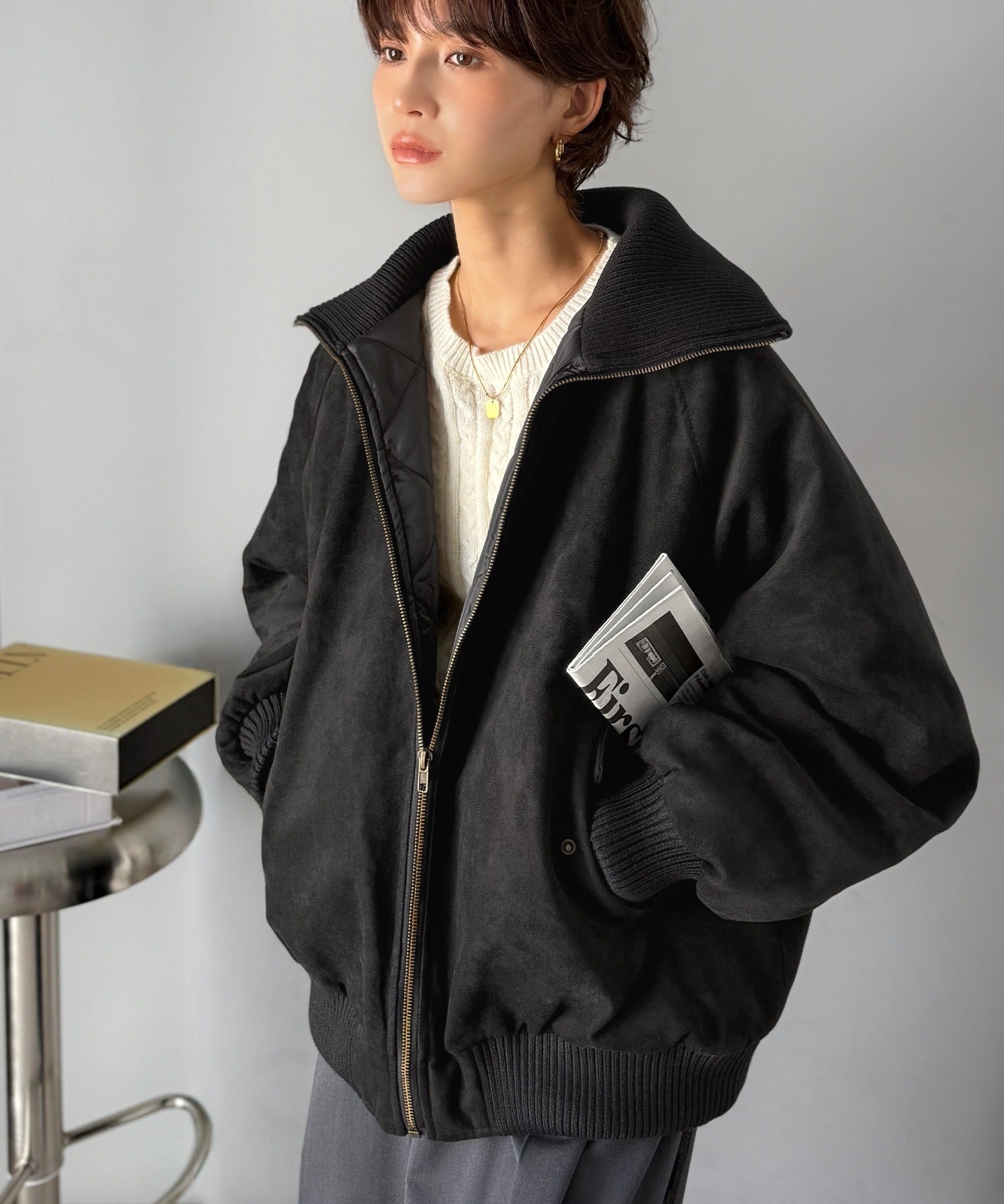 マットな質感が上品なフェイクスエードブルゾン。