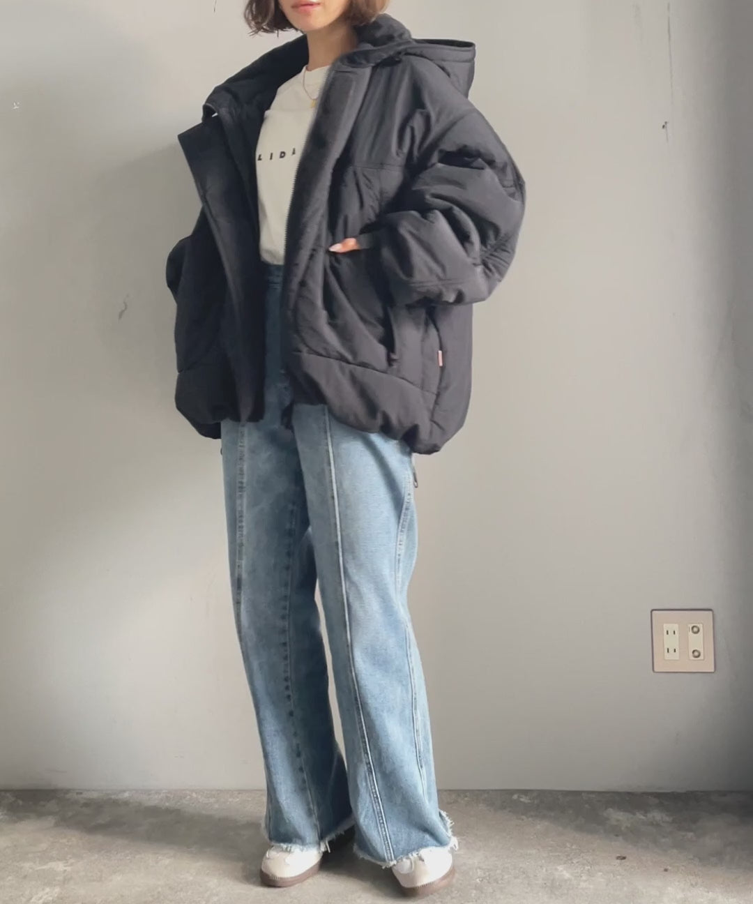 身幅や袖にゆとりを持たせているため、厚手のインナーも重ねやすく、冬本番に活躍する一着◎