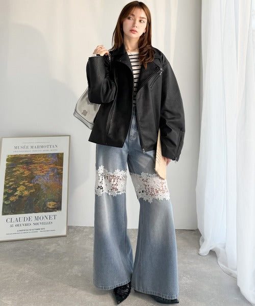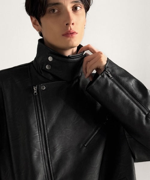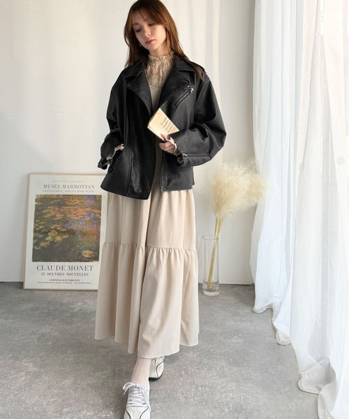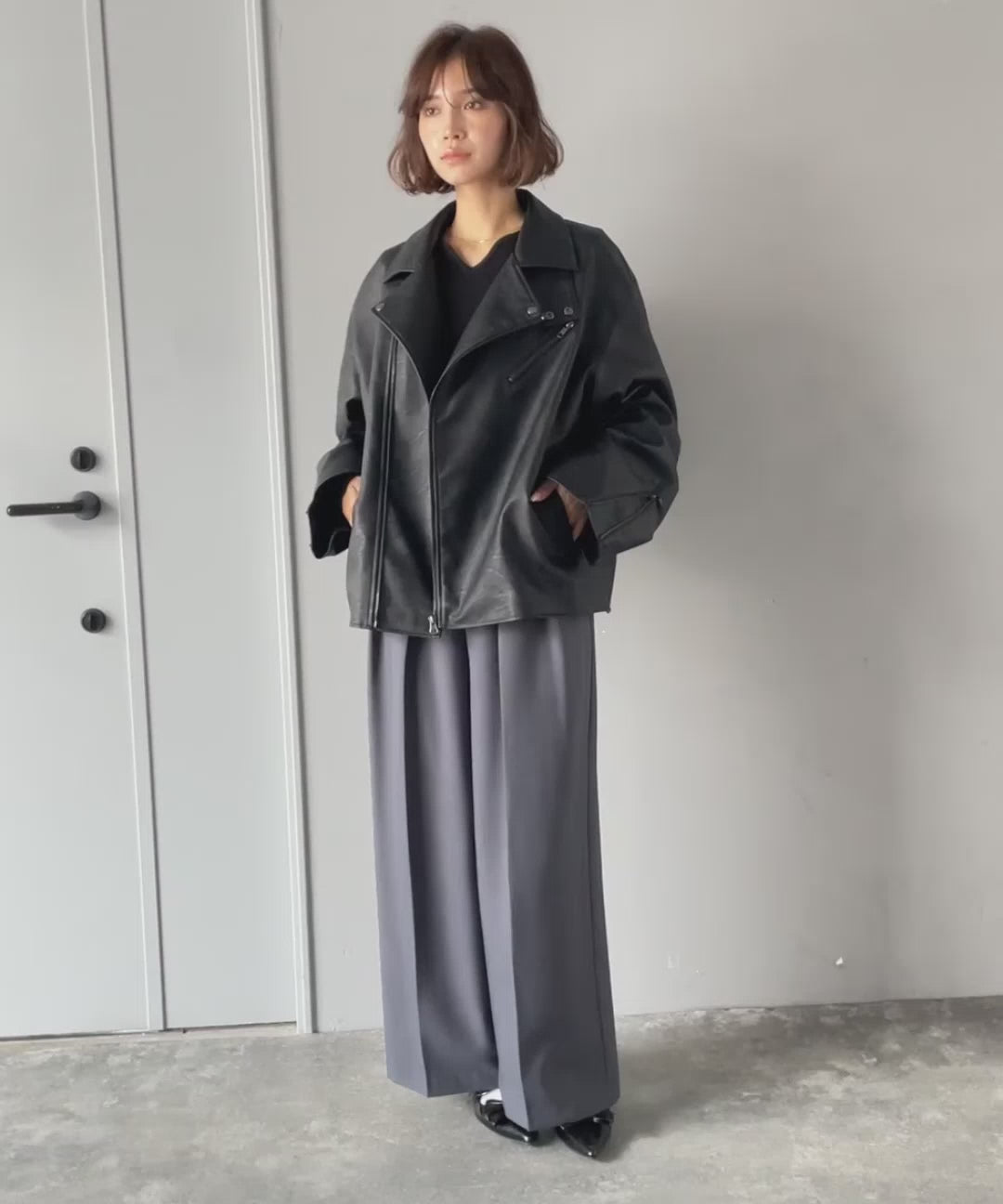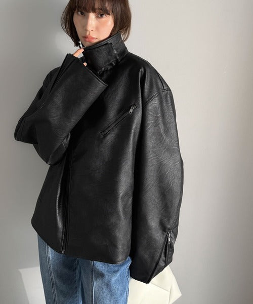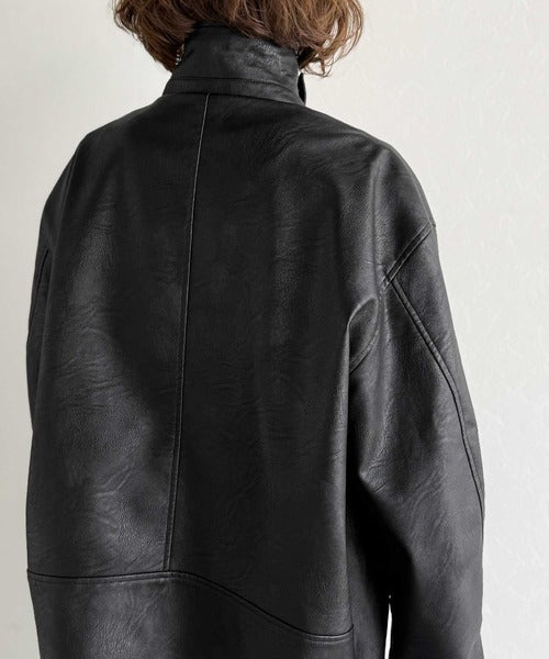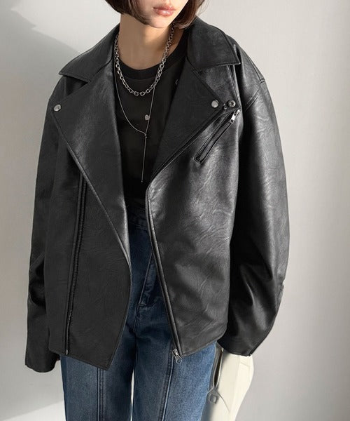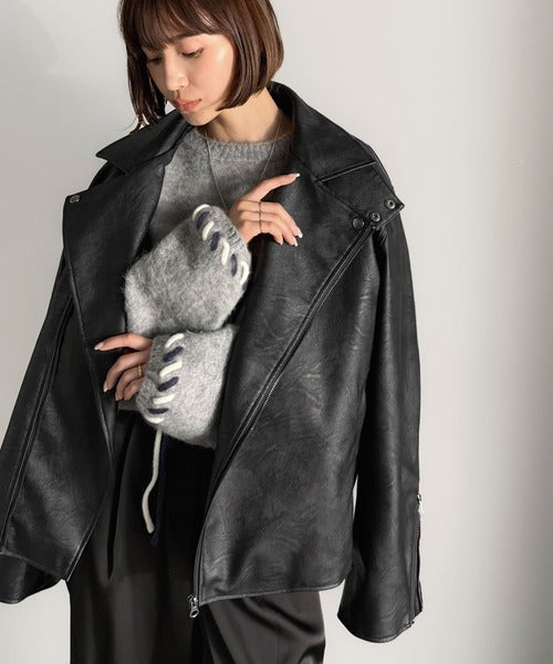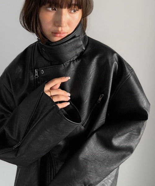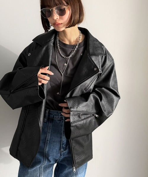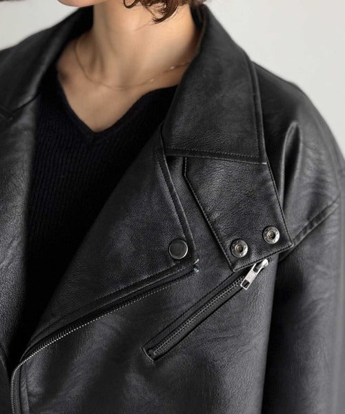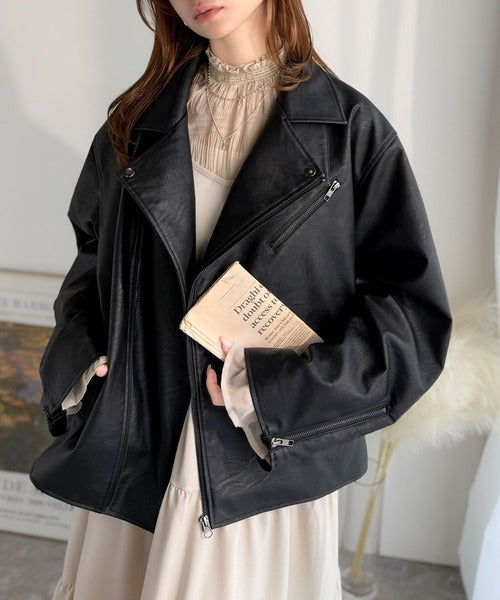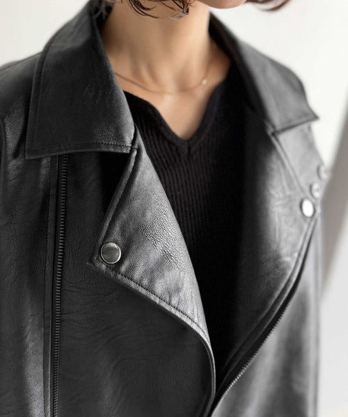 《JaVaジャバコラボ》甘さ控えめ、無敵の女っぽさ。フェイクレザーダブルライダースジャケット jv1010466