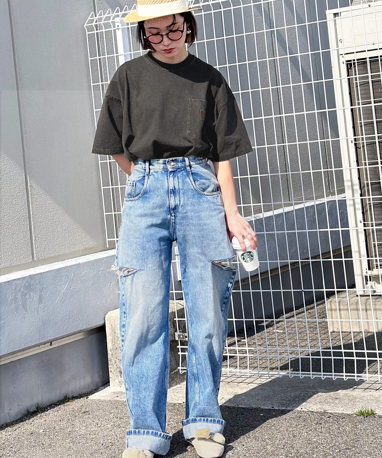 ビックシルエットだからスニーカーと合わせれば、オフの日の古着風ボーイッシュコーデが完成します。
