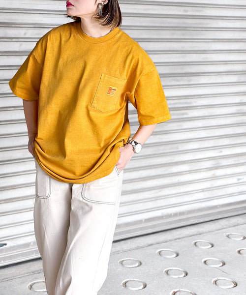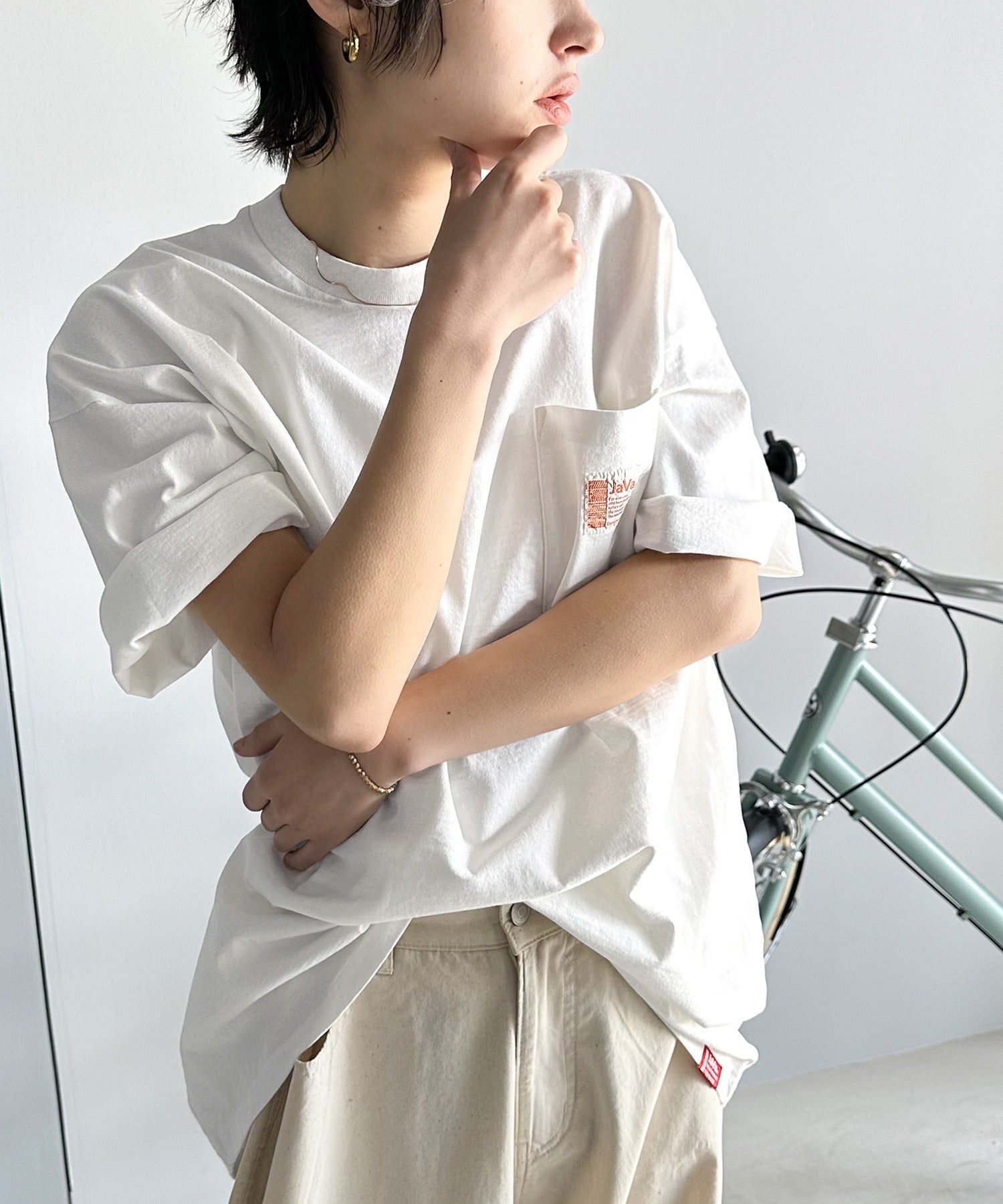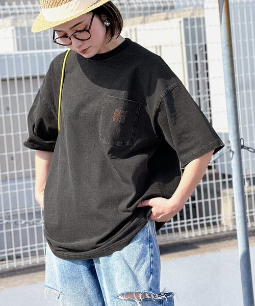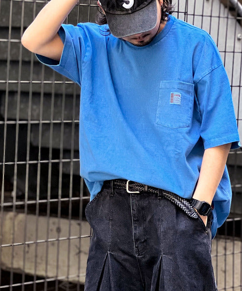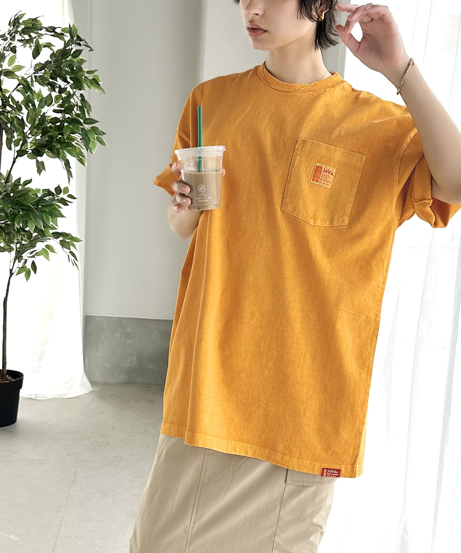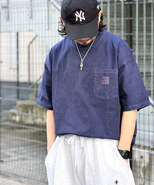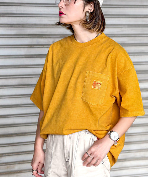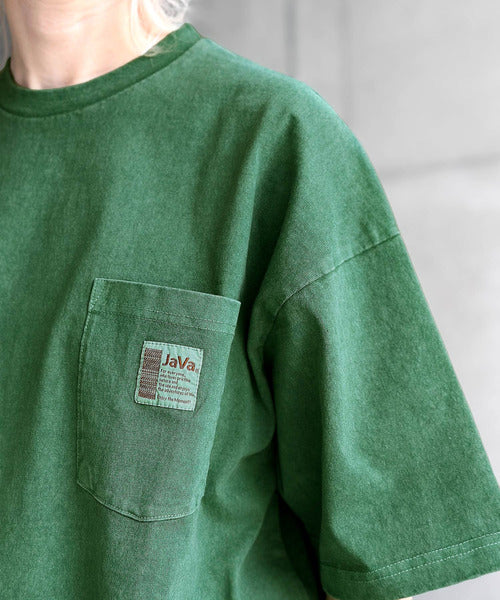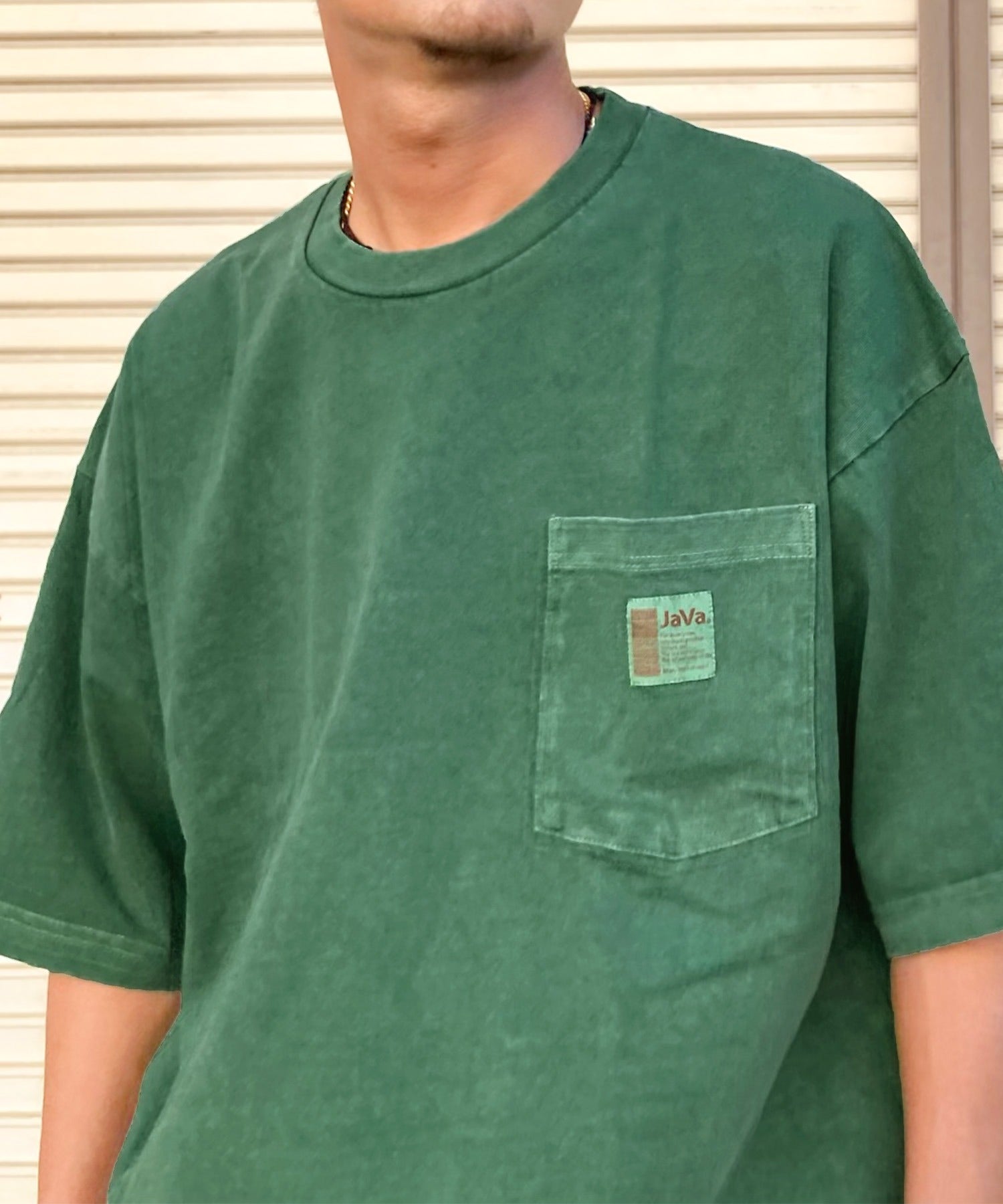 《JaVa ジャバコラボ》古着風ストリートMIX。綿100%ヘヴィーウエイト胸ポケピグメントTシャツ jv1029020