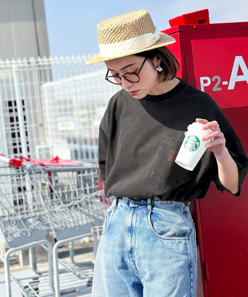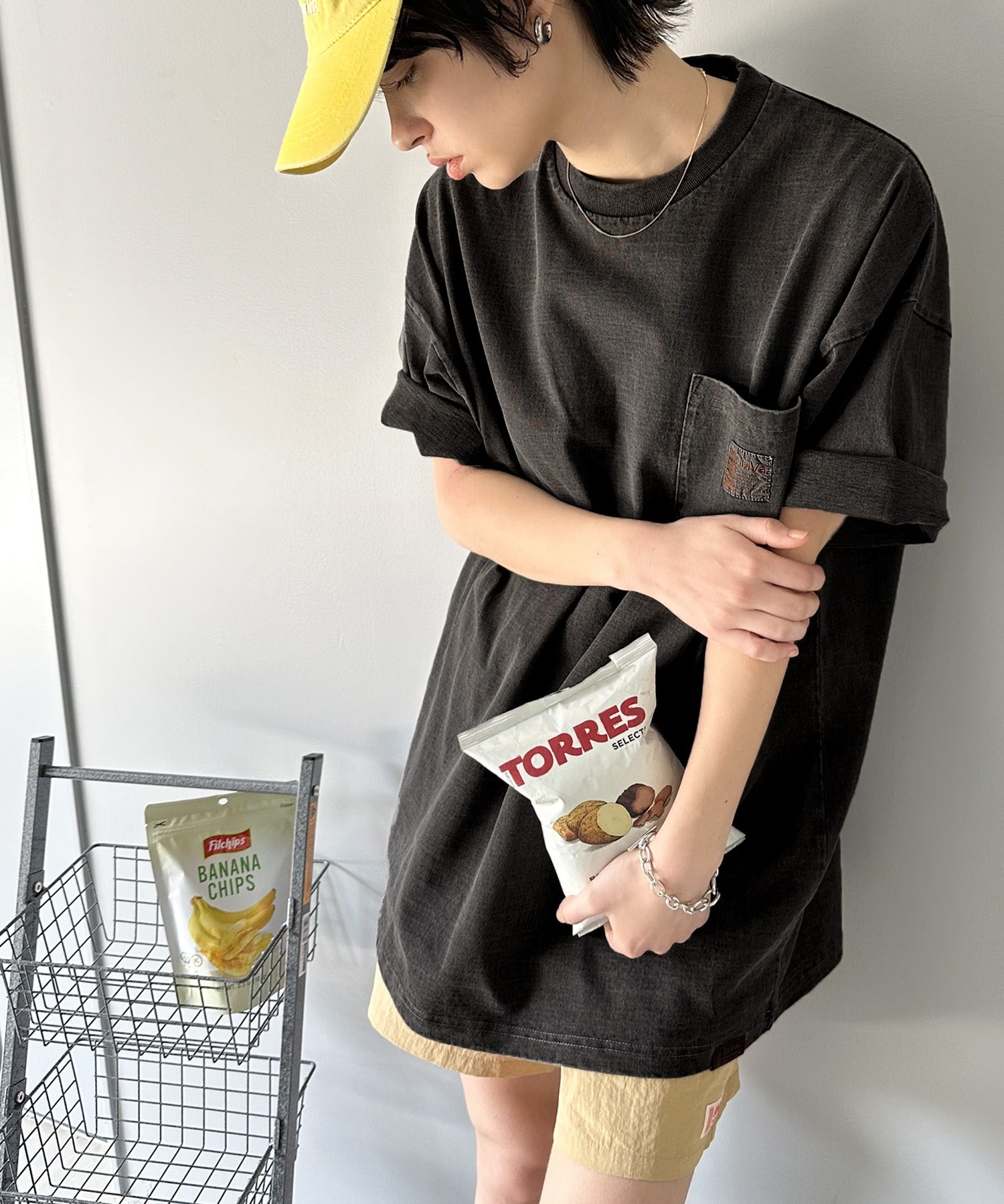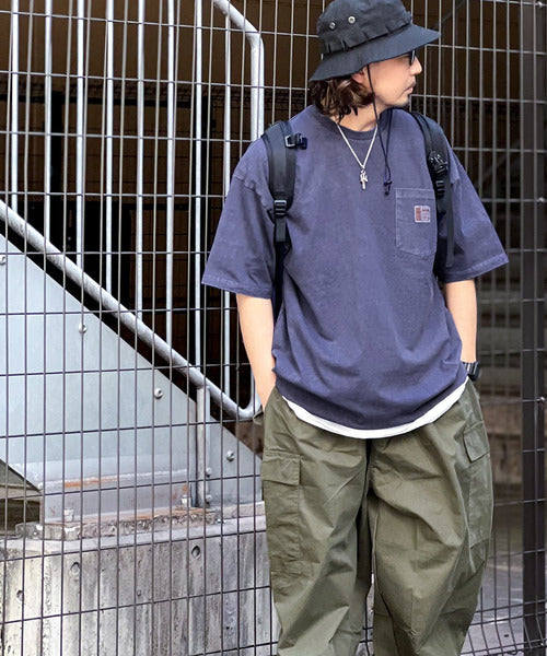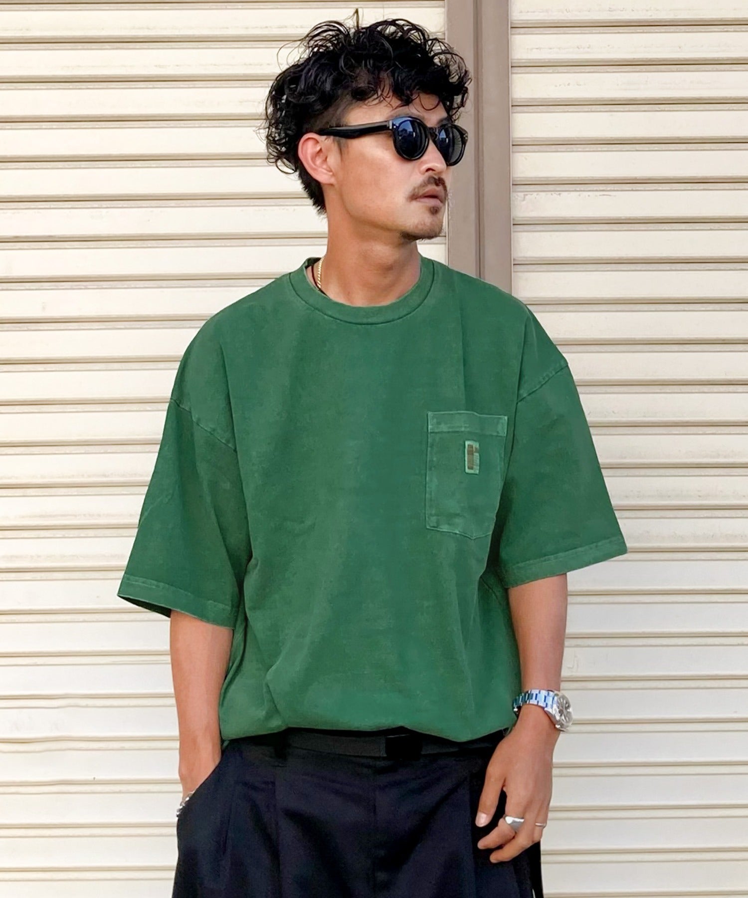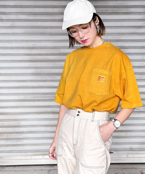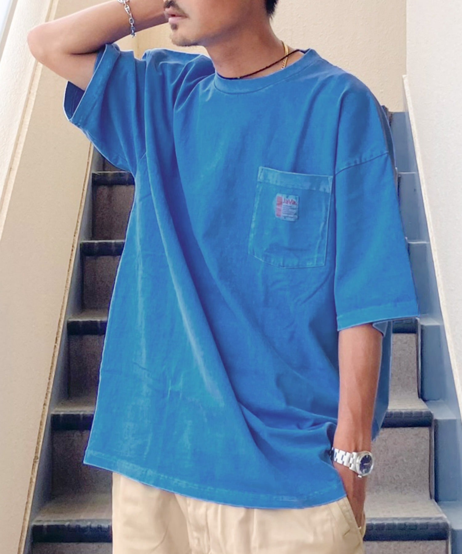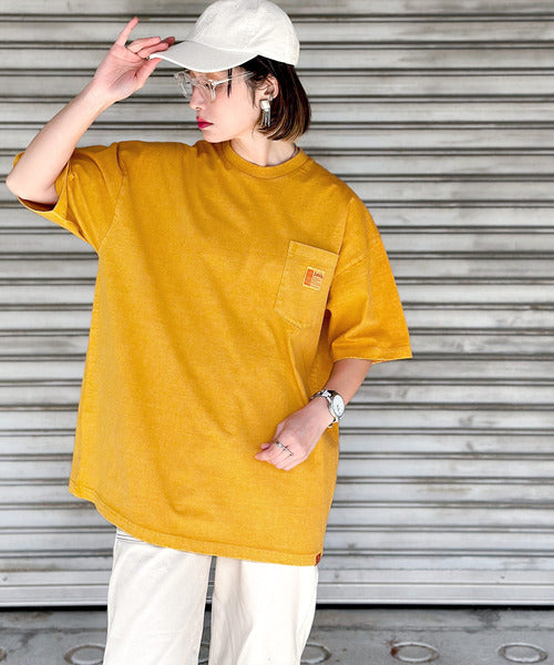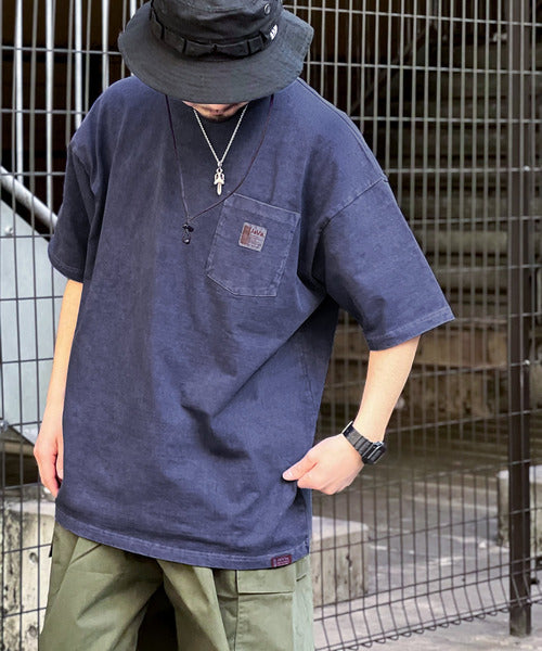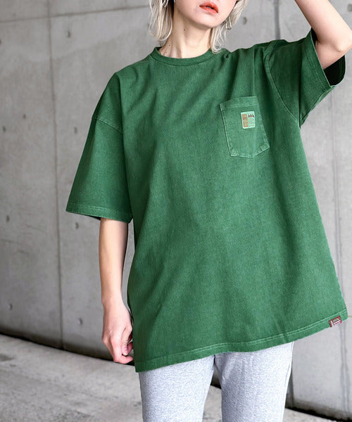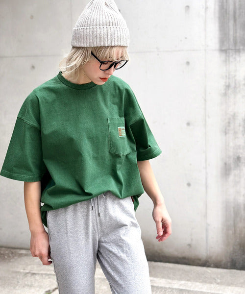 《JaVa ジャバコラボ》古着風ストリートMIX。綿100%ヘヴィーウエイト胸ポケピグメントTシャツ jv1029020