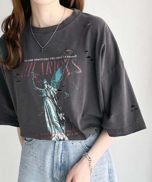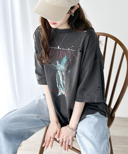 H157 M着用 カラー:F 女神:(半袖)襟、袖、裾にダメージ加工が入っており、個体差がございます