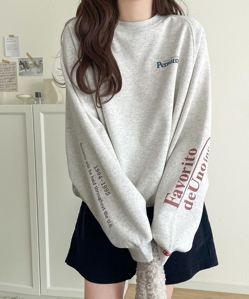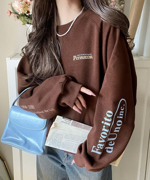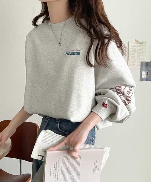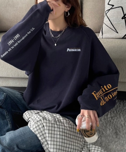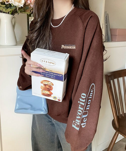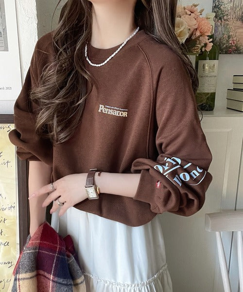 お洒落に配置されたロゴテキストが魅力の裏起毛プルオーバー♪