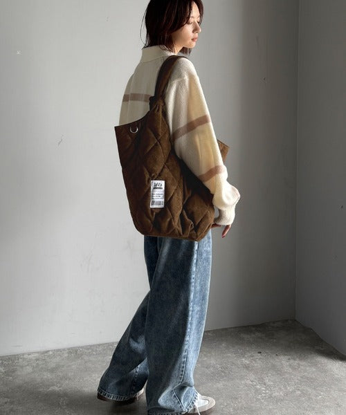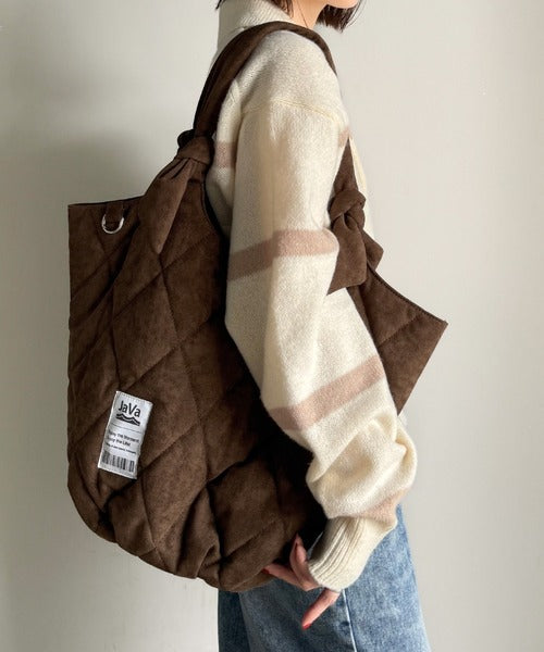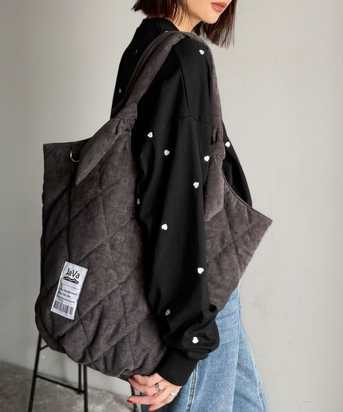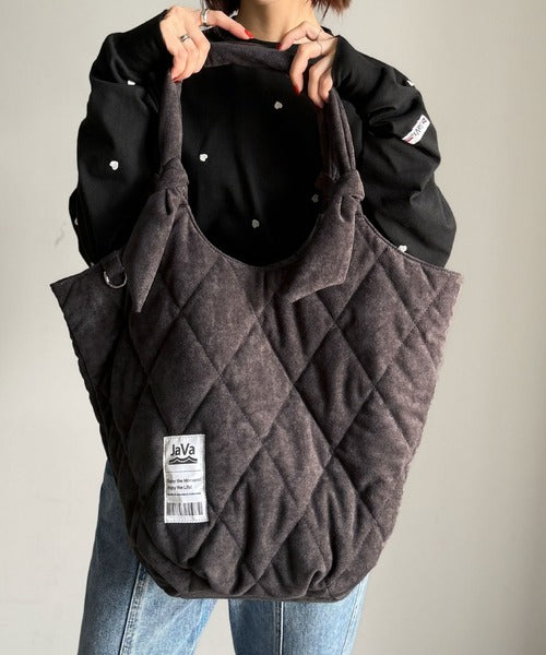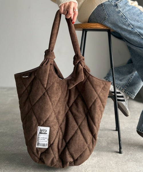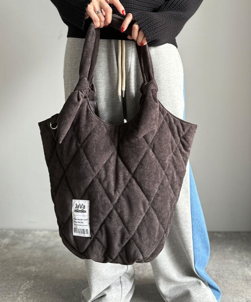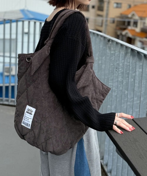 《JaVaジャバ コラボ》大容量!ふわもち素材♪スウェードライクキルティングトートバッグ(チャームフック付き) jv1179069