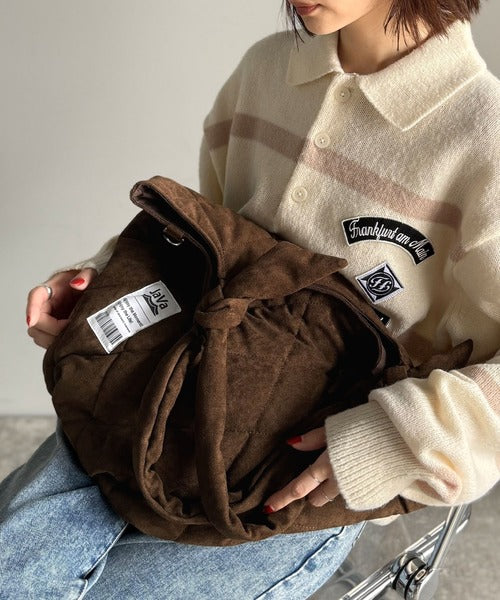 スウェードライクキルティングビッグラウンドショルダーバッグは、ふわふわの持ち手が特徴。
