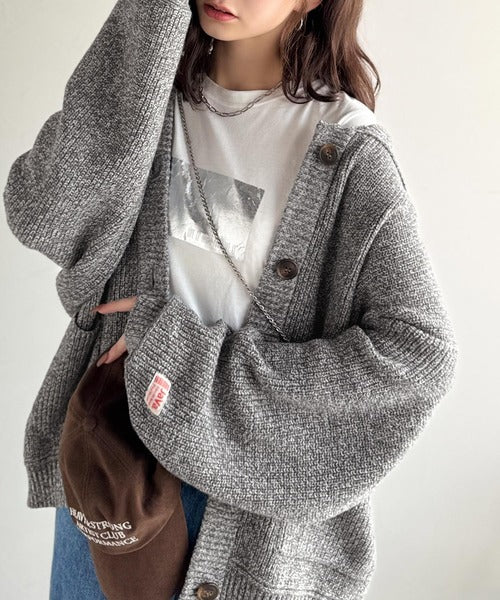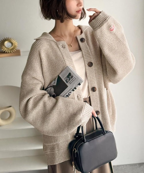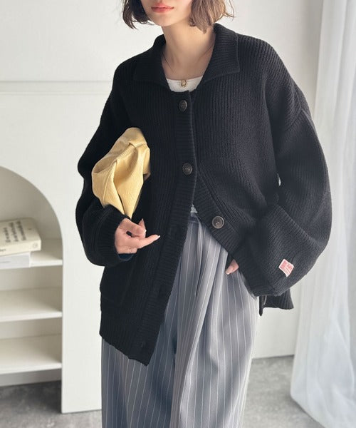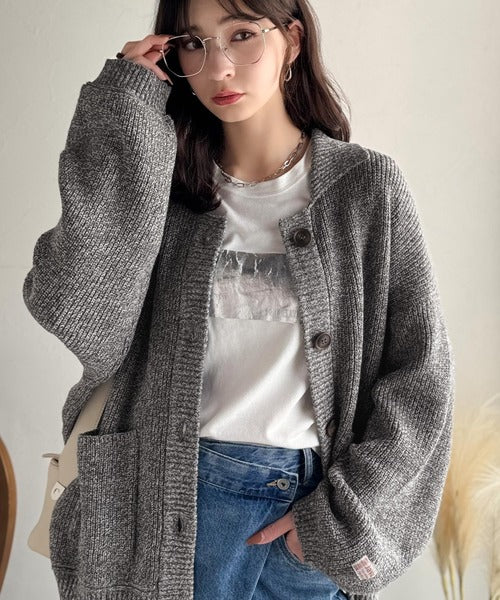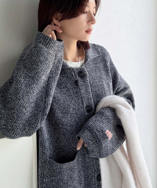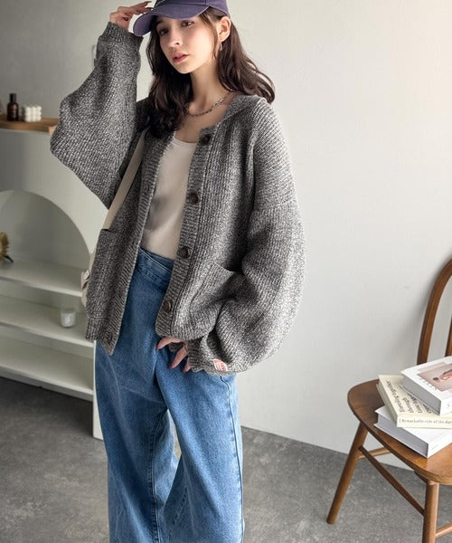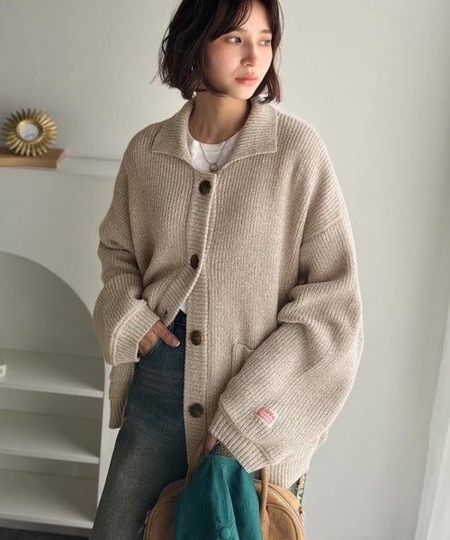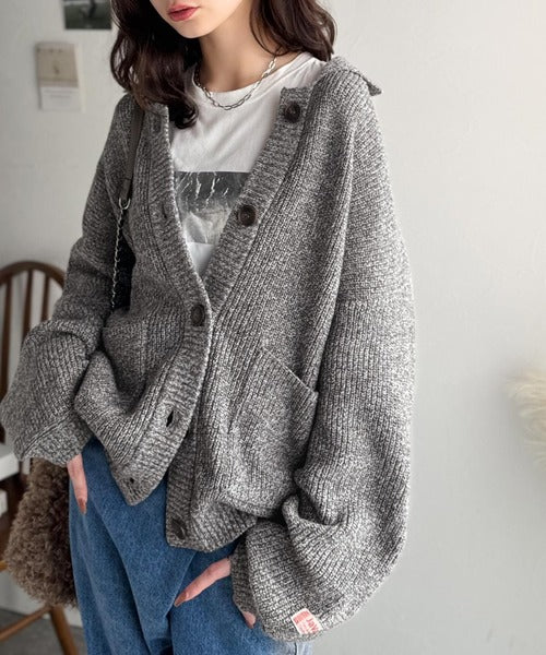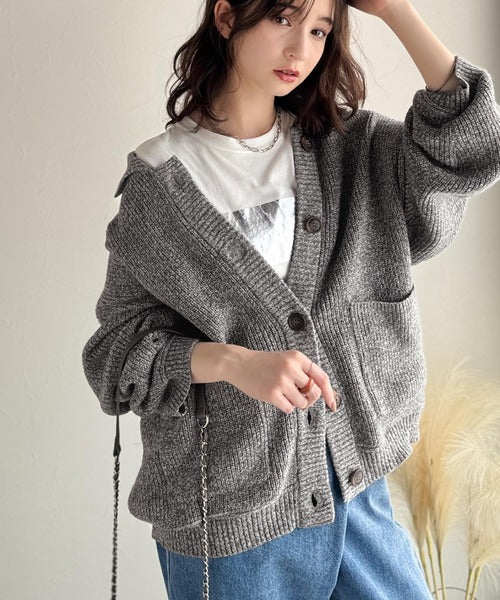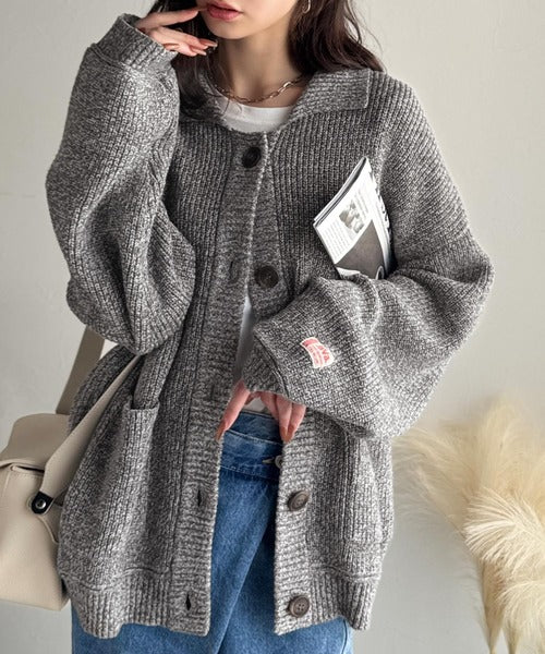 《JaVaジャバコラボ》メンズライクなこなれ感を演出。メランジ襟付きカーディガン jv1260493