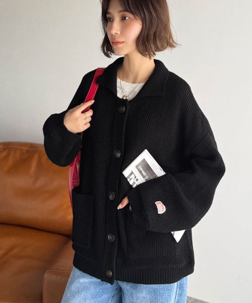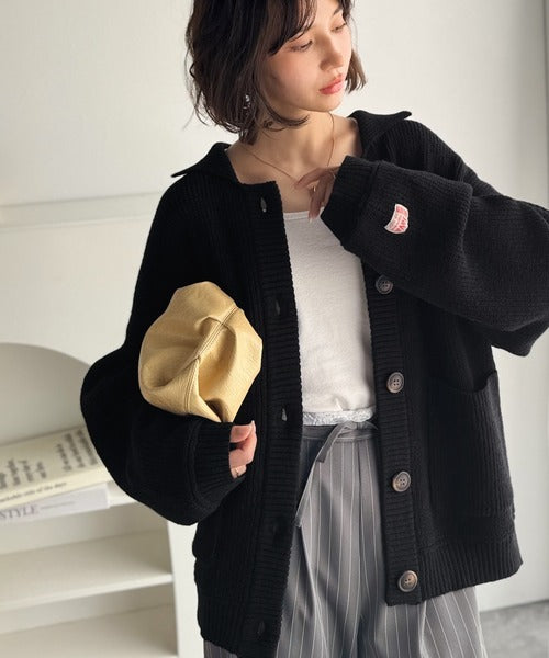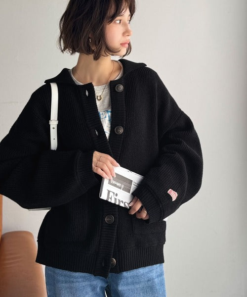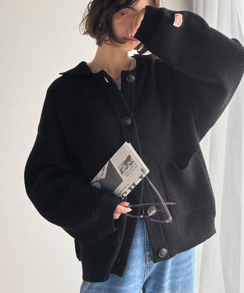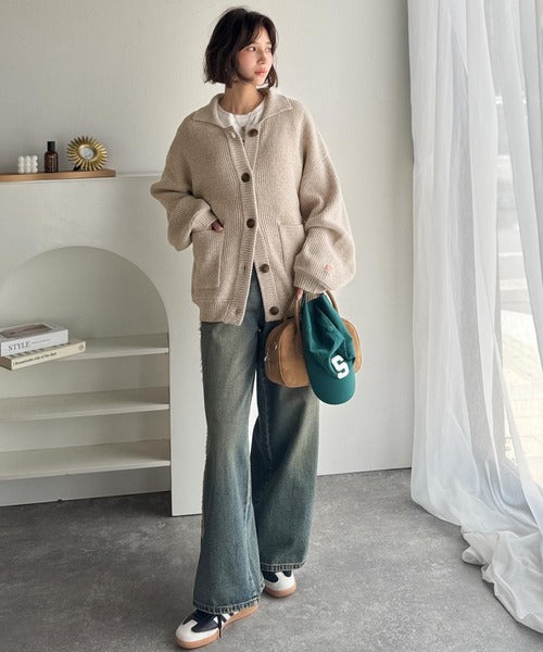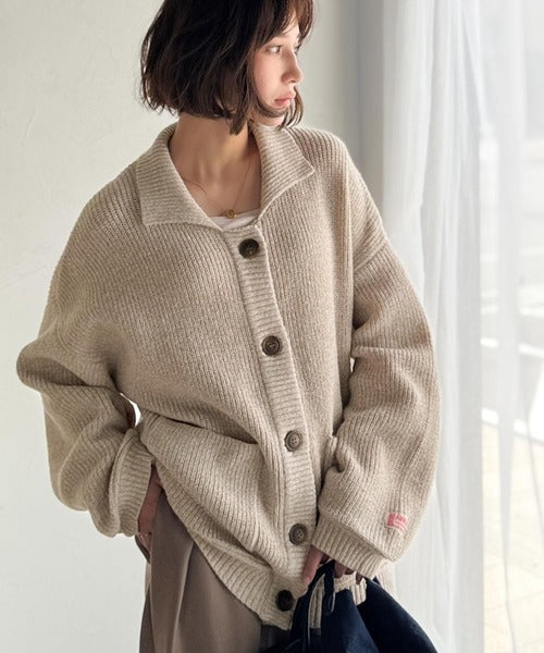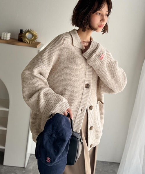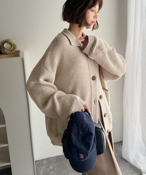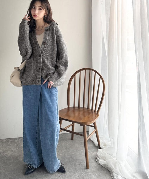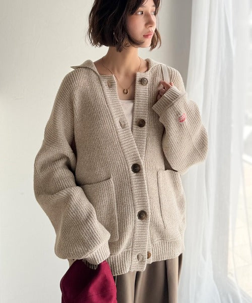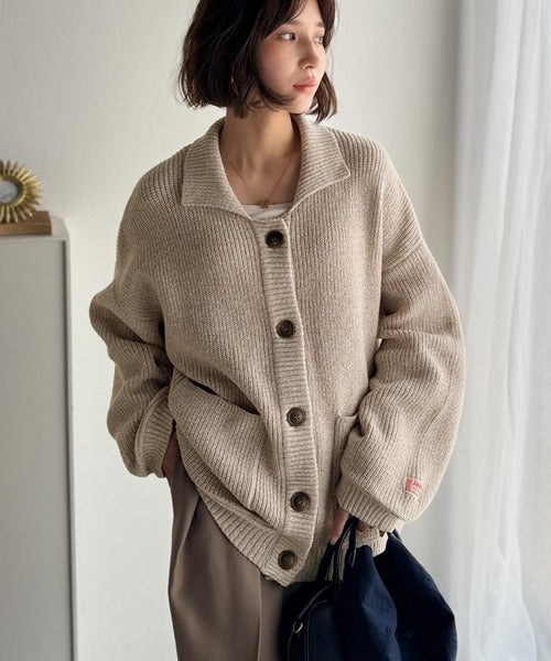 《JaVaジャバコラボ》メンズライクなこなれ感を演出。メランジ襟付きカーディガン jv1260493