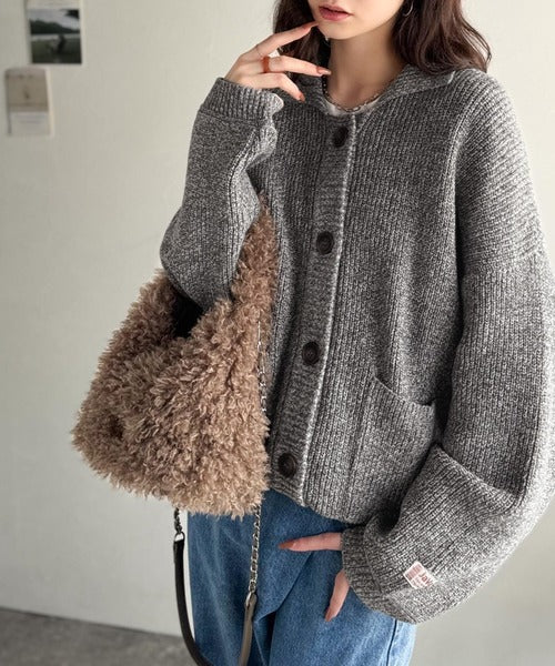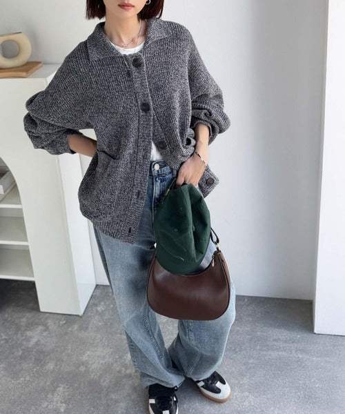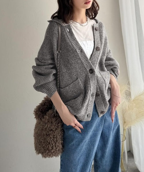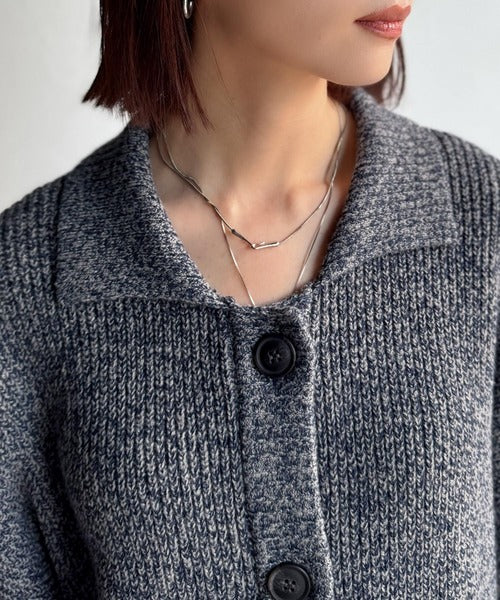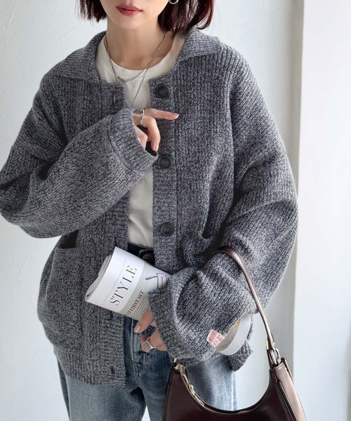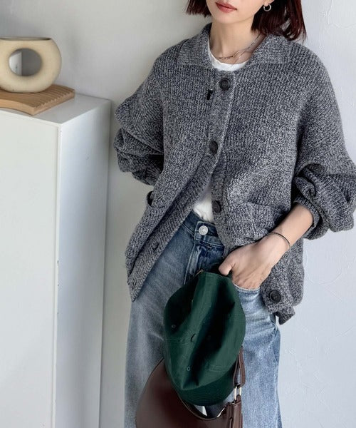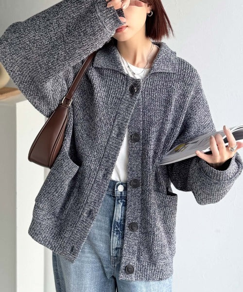 ヴィンテージライクな雰囲気を放つメランジ糸を使用した襟付きカーディガン。