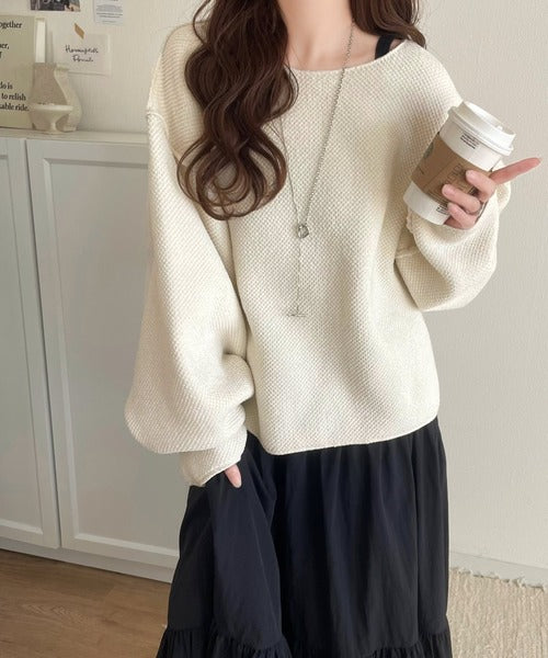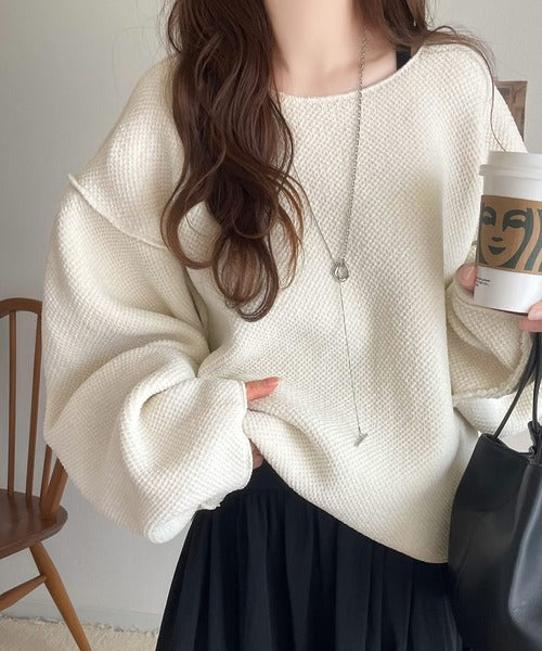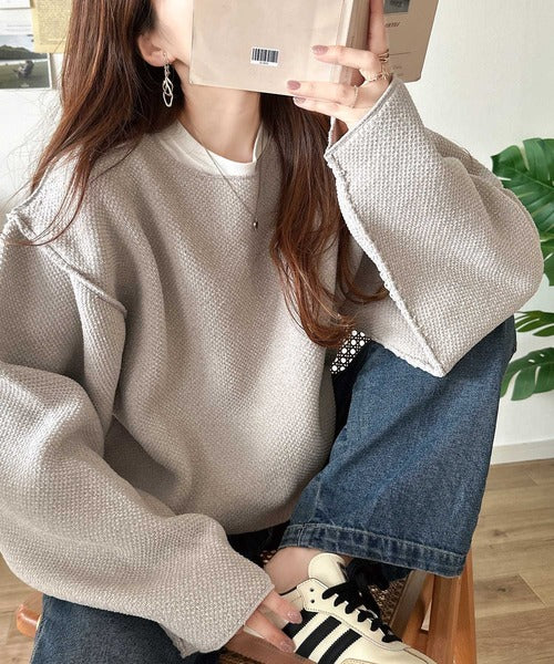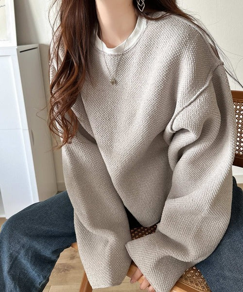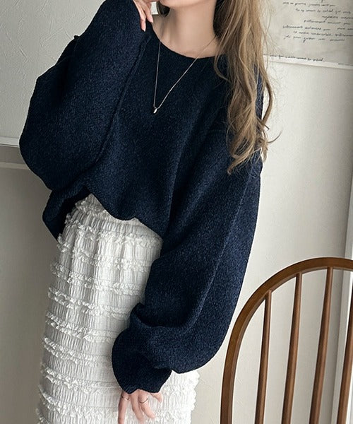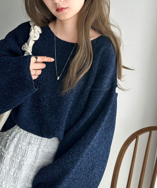 ゆったりとしたシルエットでこなれ感。モール糸ジャカード編みニットプルオーバー ce0940207