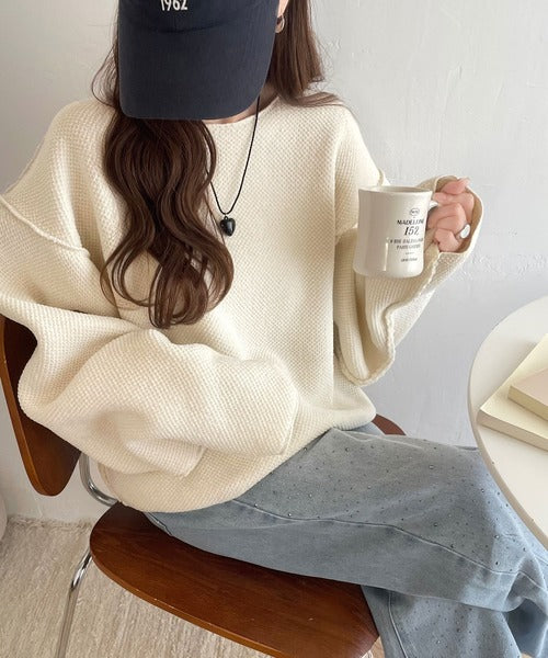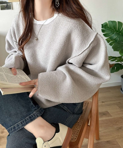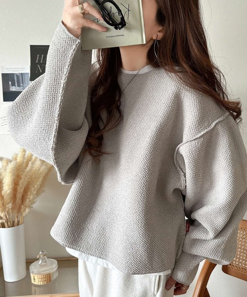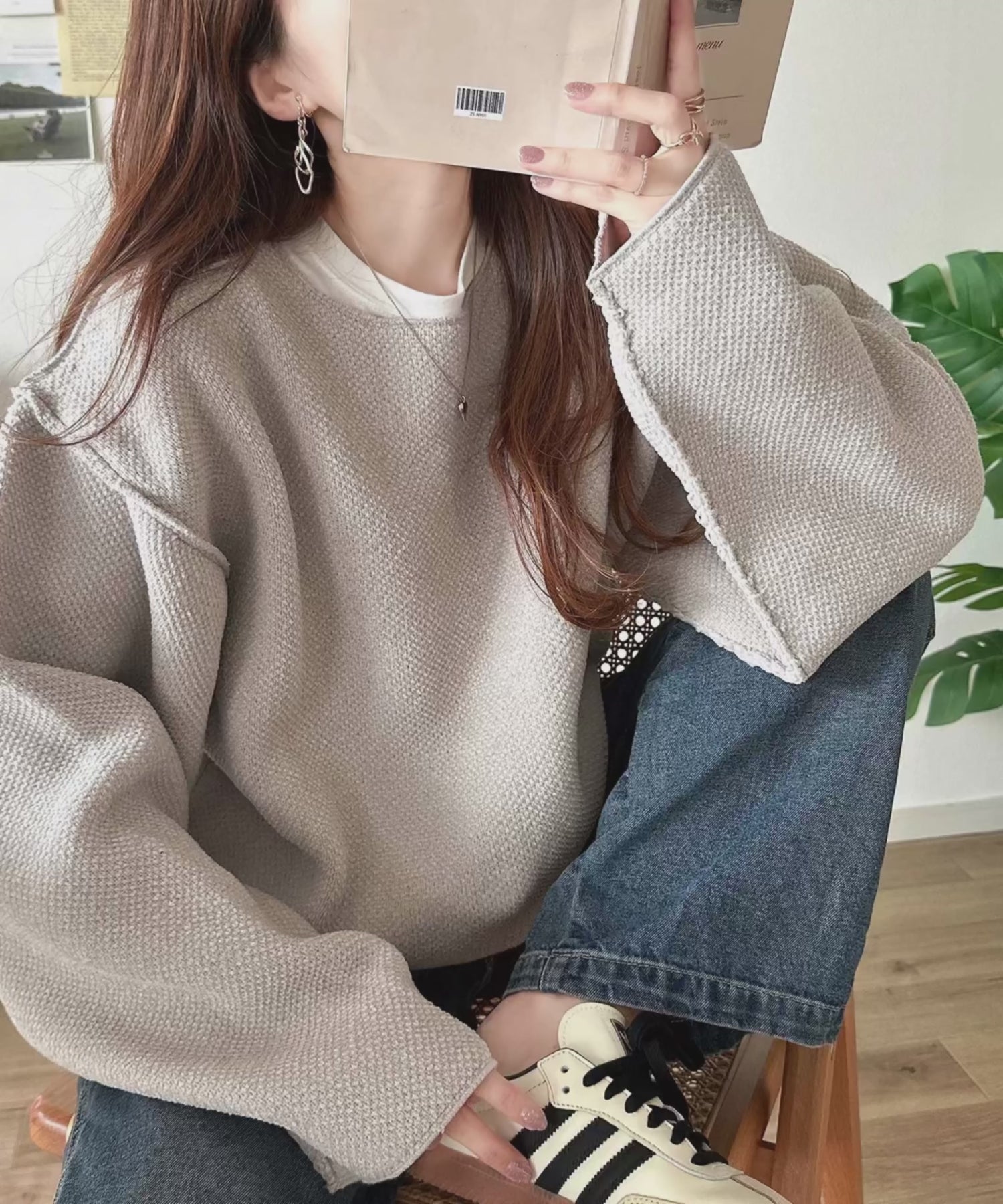 外側縫いしろが肩落ちのシルエットを演出し、こなれ感を醸し出します。