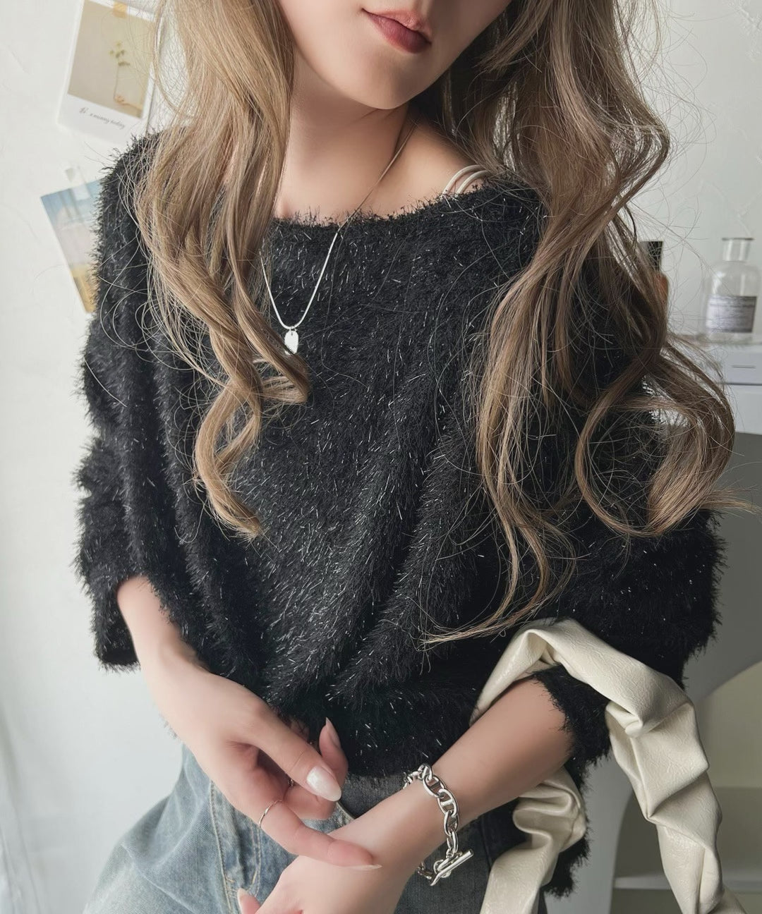 トレンド感あるラメ入りシャギーを使用しているので
