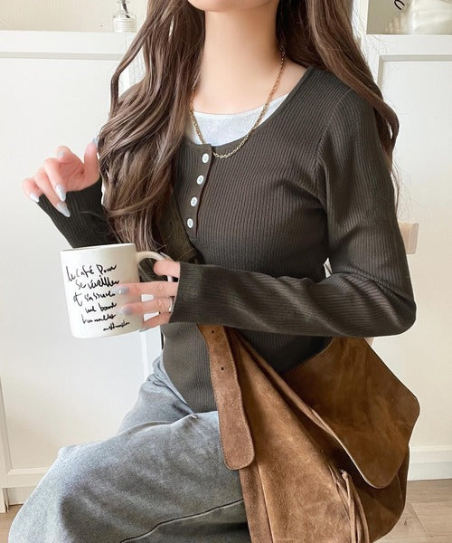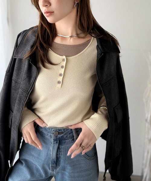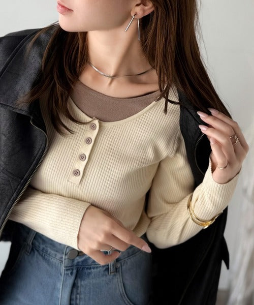 レイヤード風のフェイクデザインが、コーディネートに奥行きを与え、スタイリングの幅を広げてくれます。
