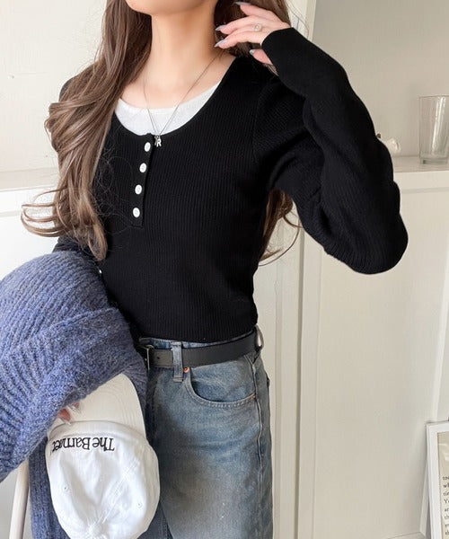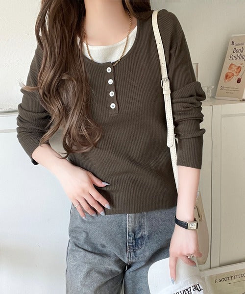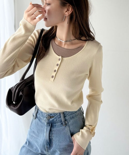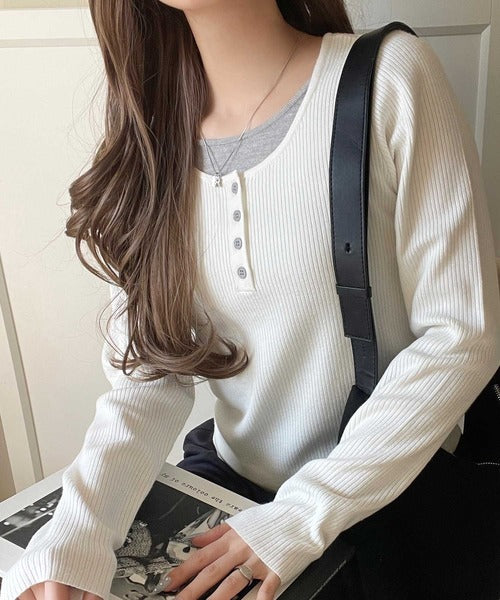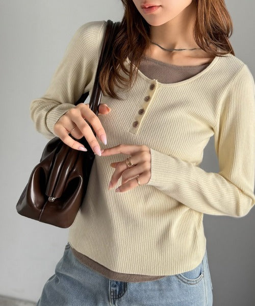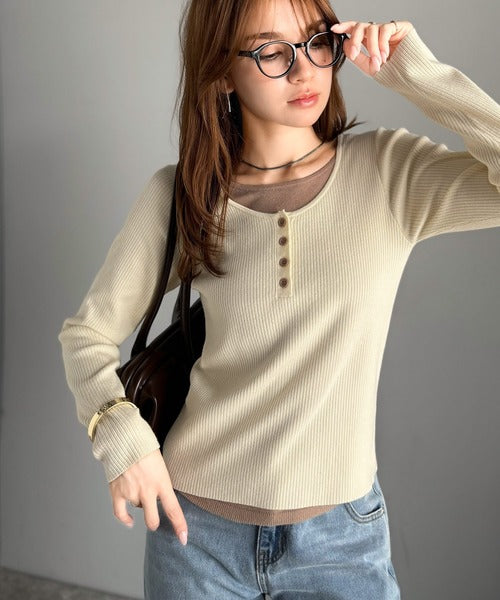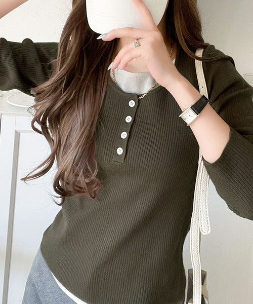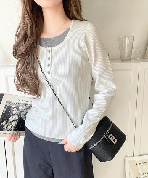 ヘンリーフェイクレイヤードプルオーバーは、シンプルながらも洗練されたデザインが魅力の一枚♪