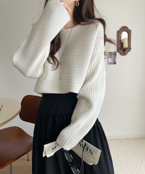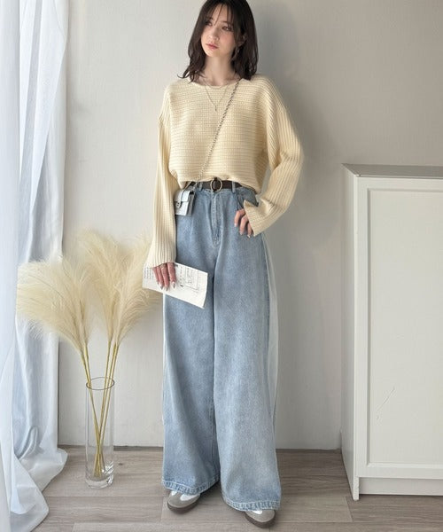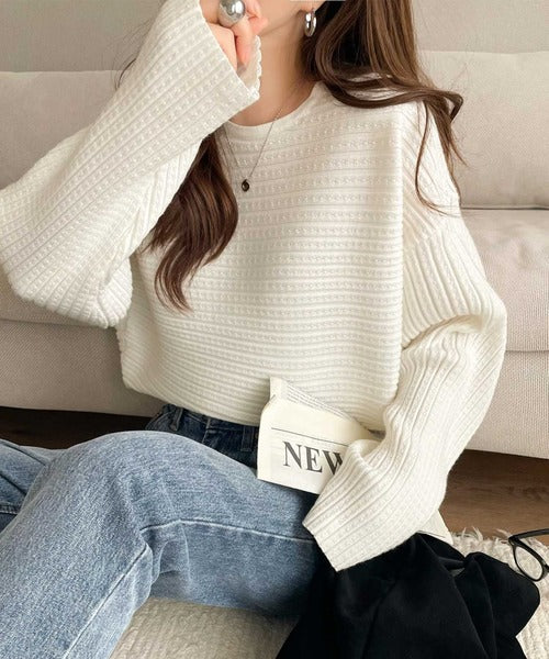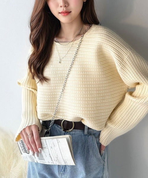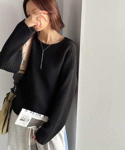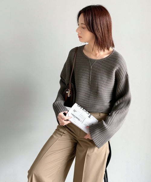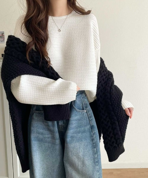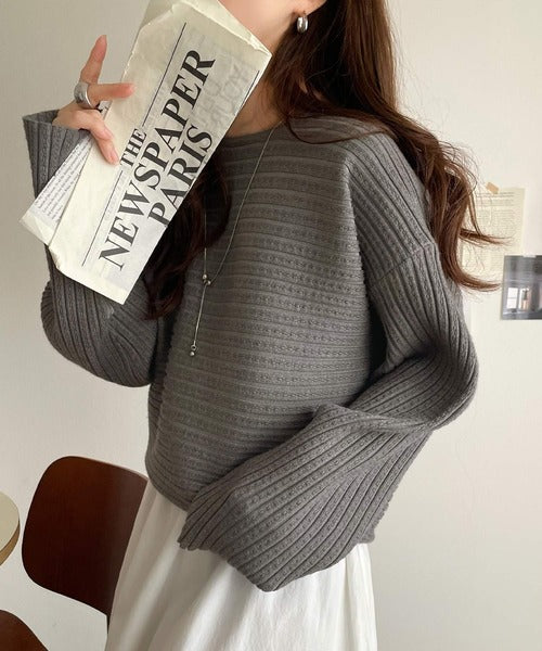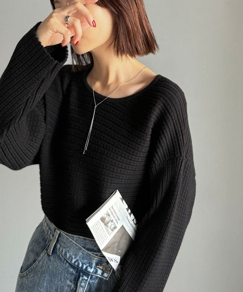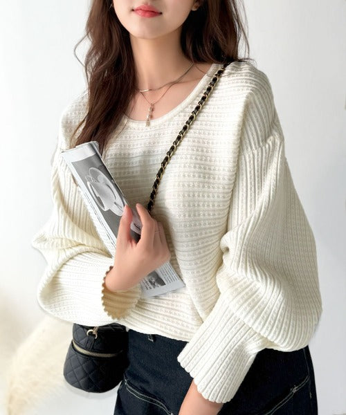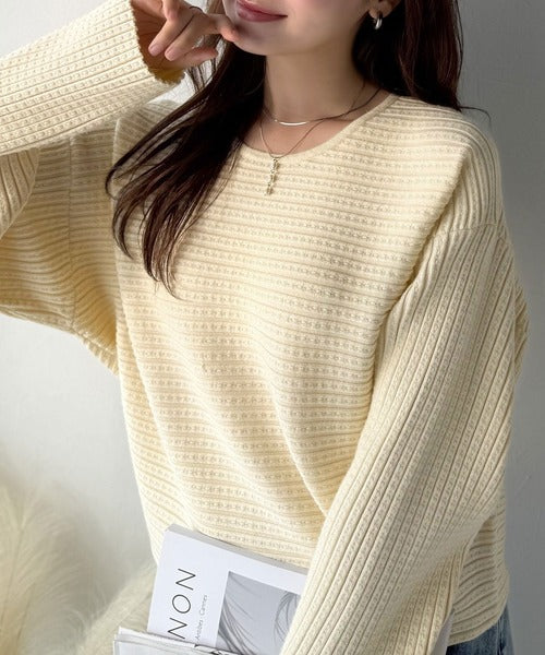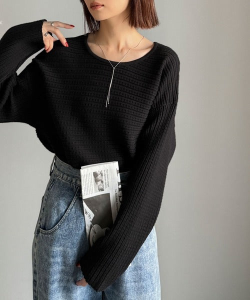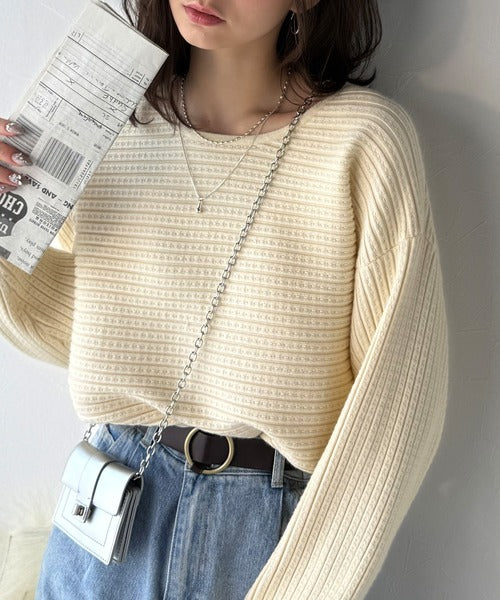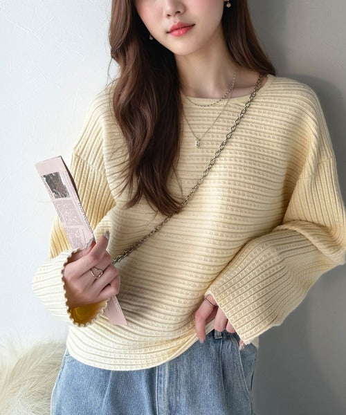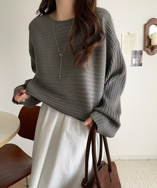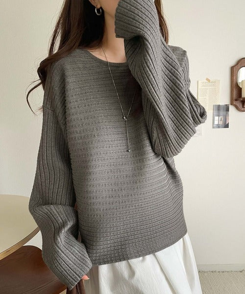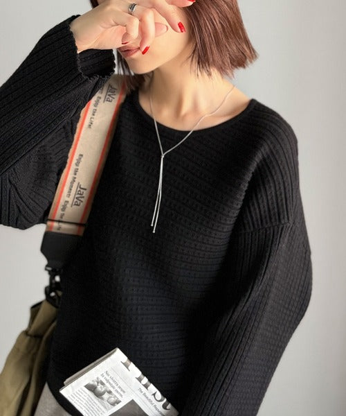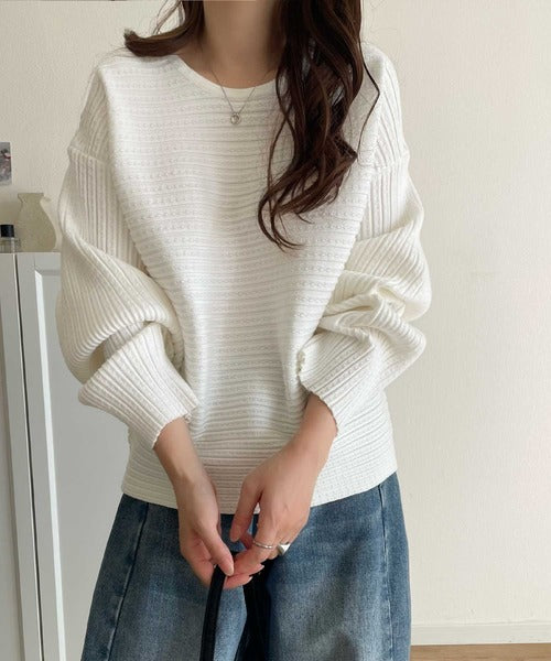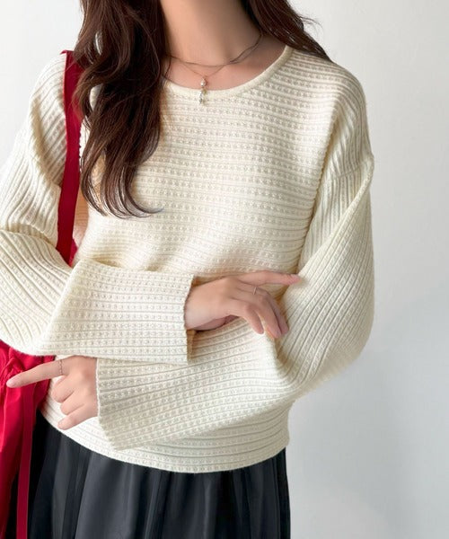 ゆるリブの抜け感。ドルマン袖クルーネックニットトップス(長袖) ce1020304