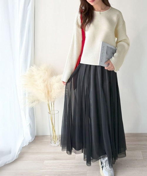 チュールスカートやキャミワンピースを合わせた甘めスタイルまで