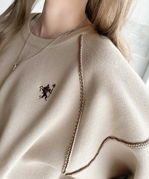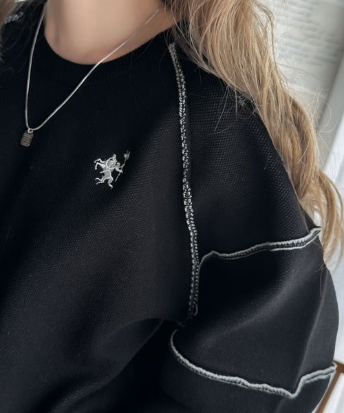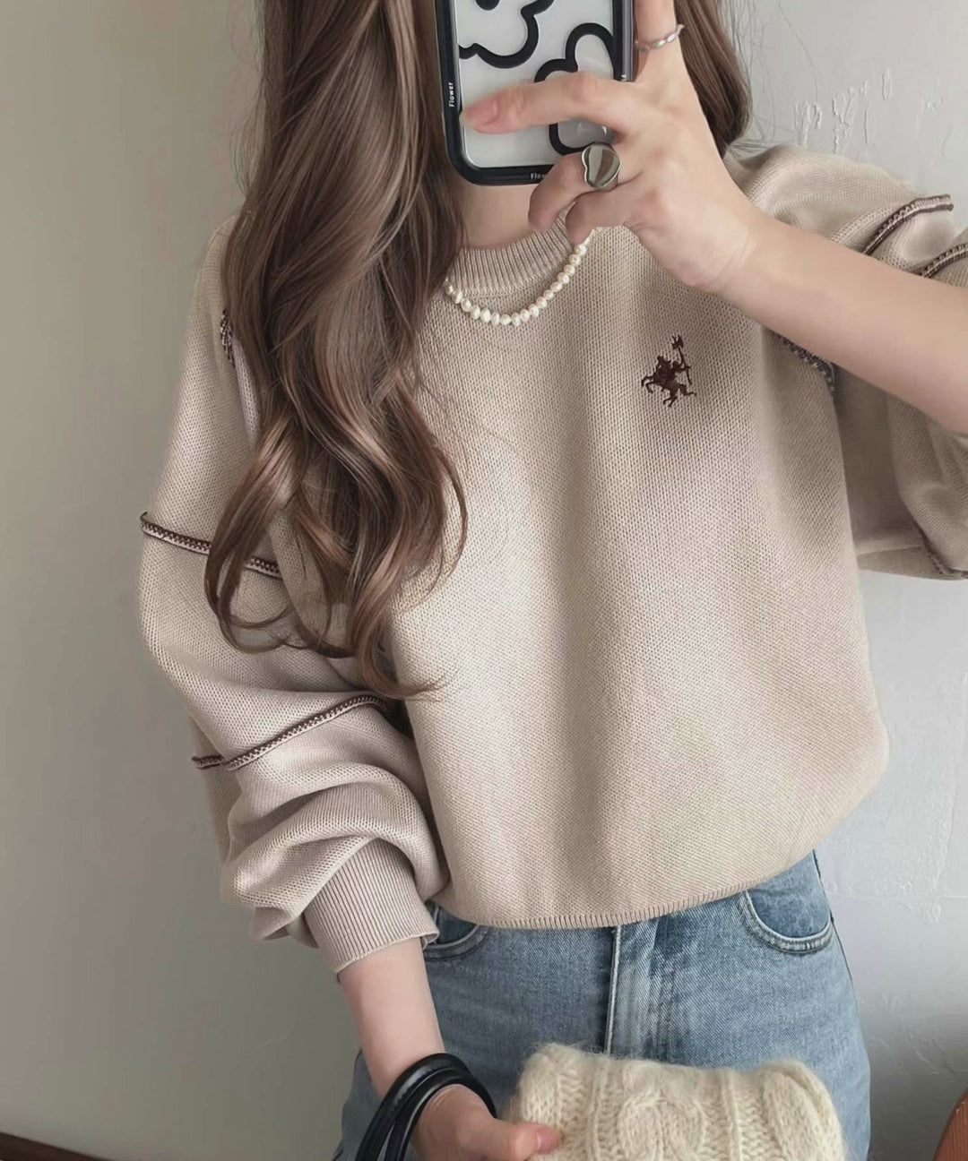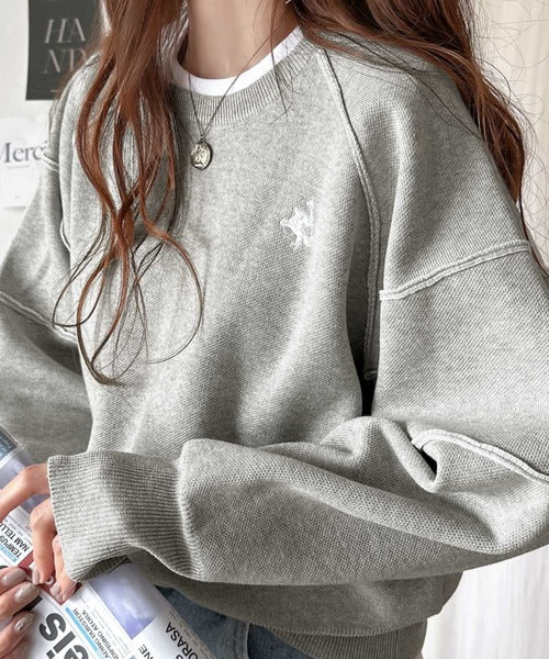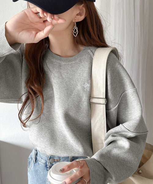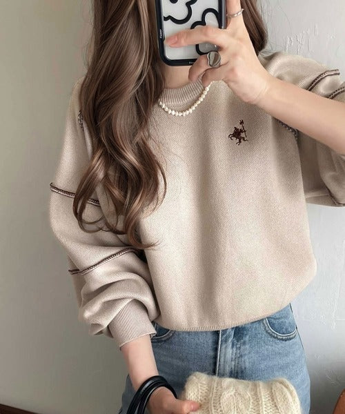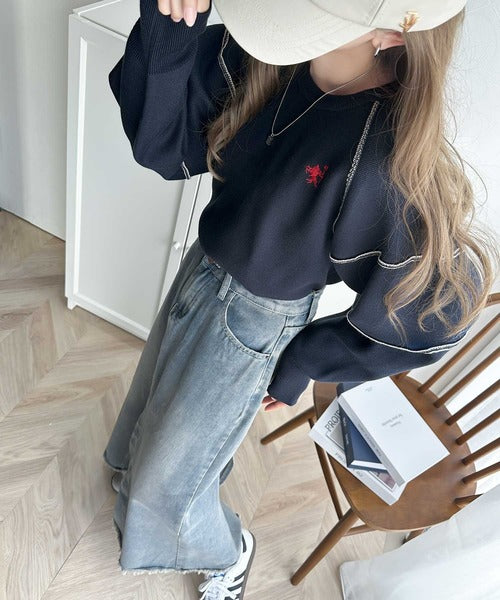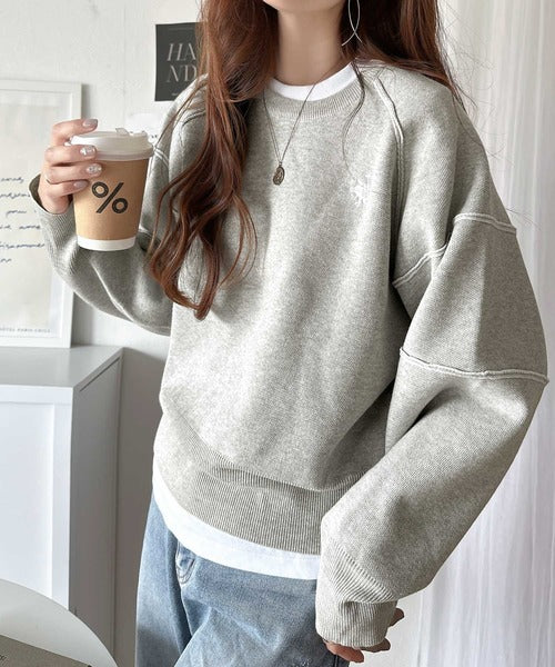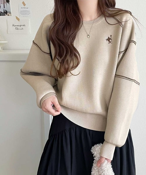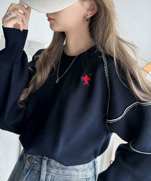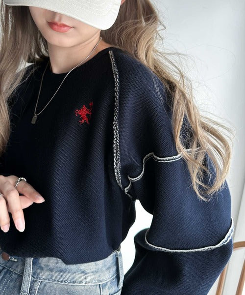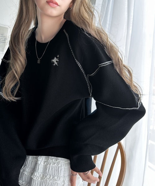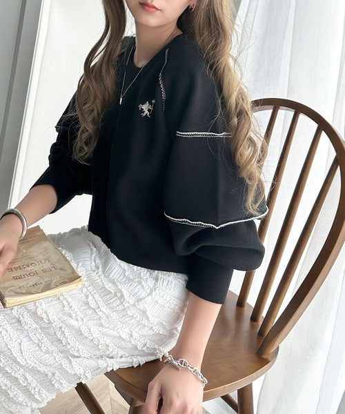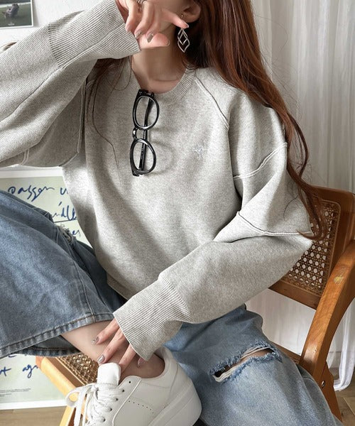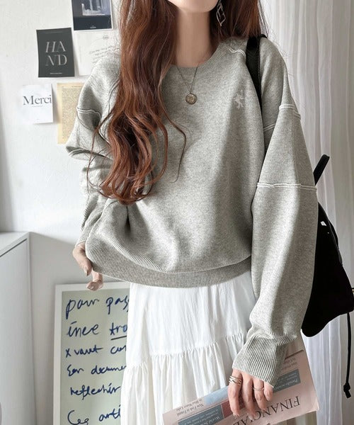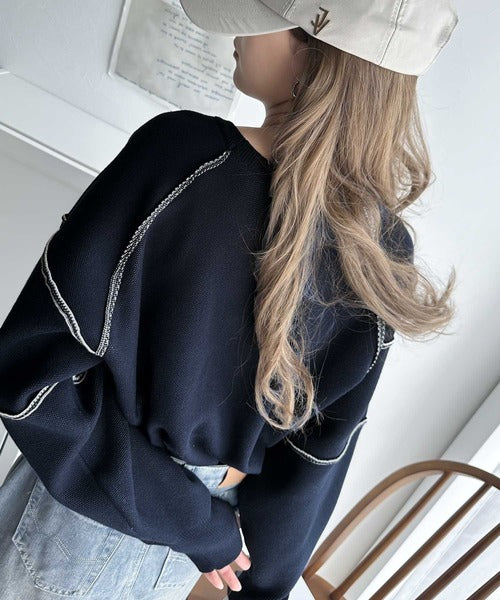袖切り替えが特徴的な短丈のニットプルオーバー。