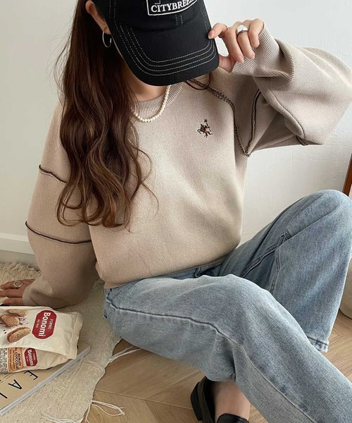 テクニックいらずで簡単にこなれ見え。ダブルジャガードスウェット見え袖切替ラグランニット ce1050225