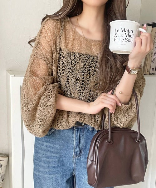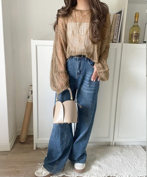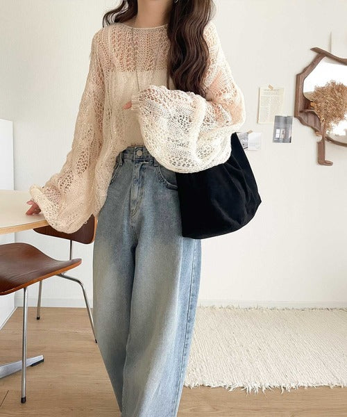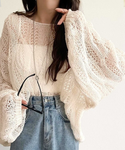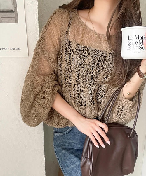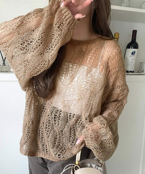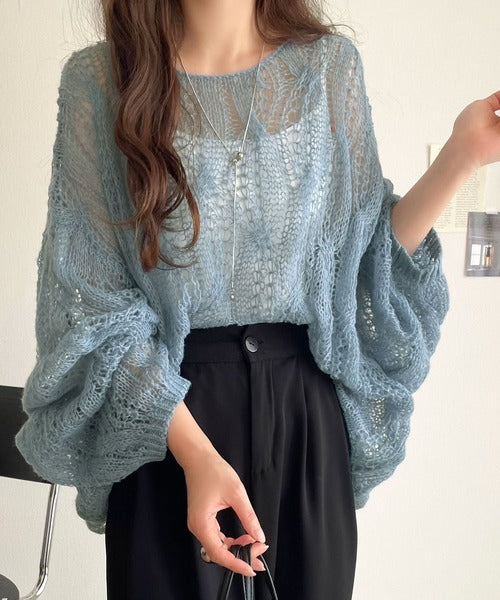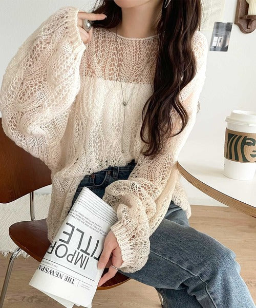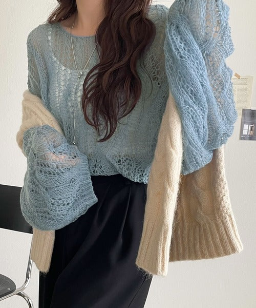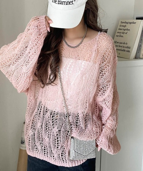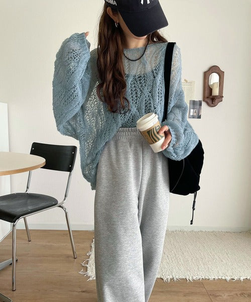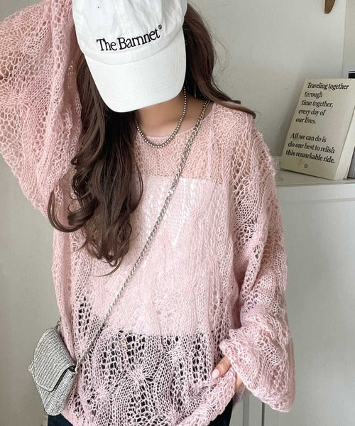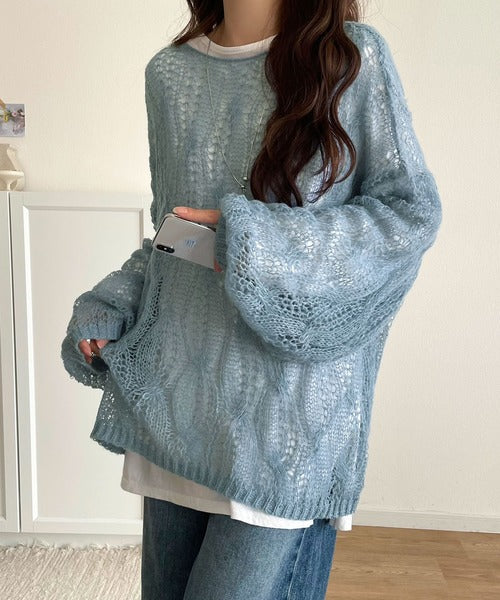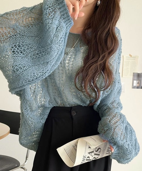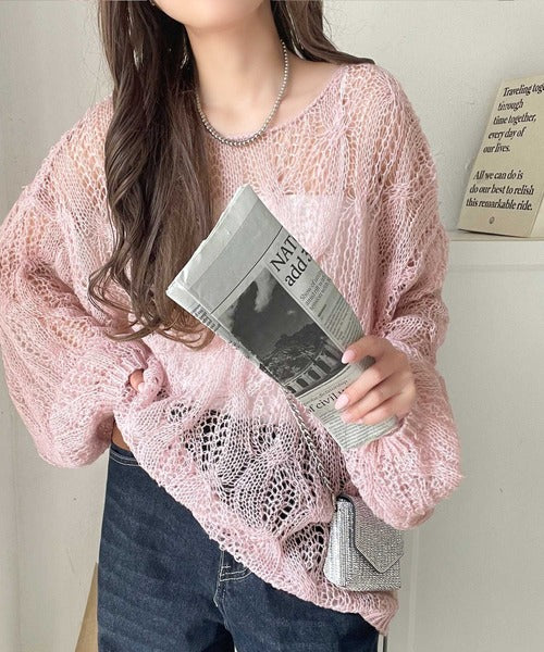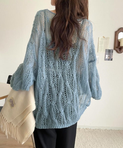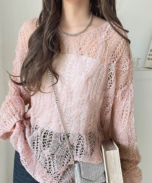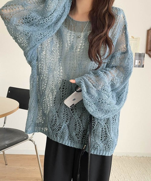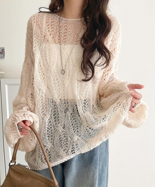 ゆるっと抜け感漂う!透かし編みケーブルオーバーサイズニット(長袖) ce1050320