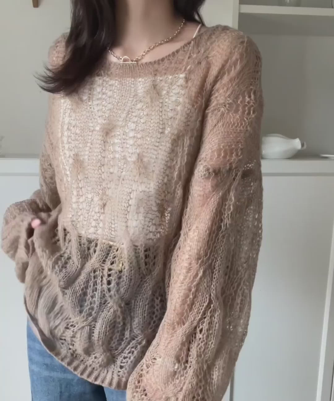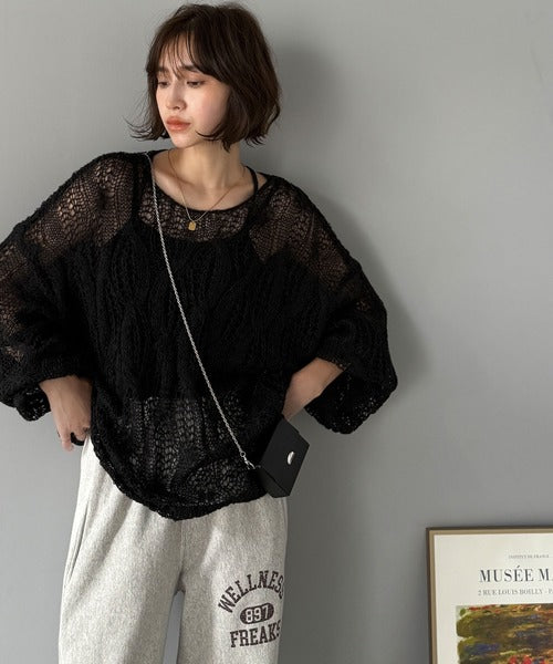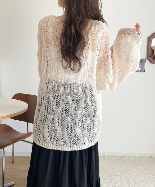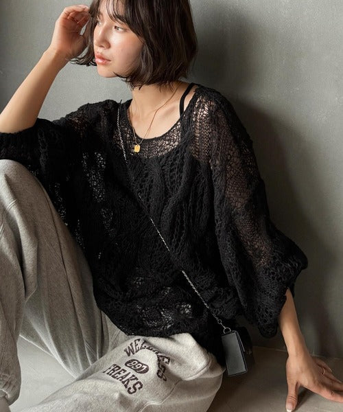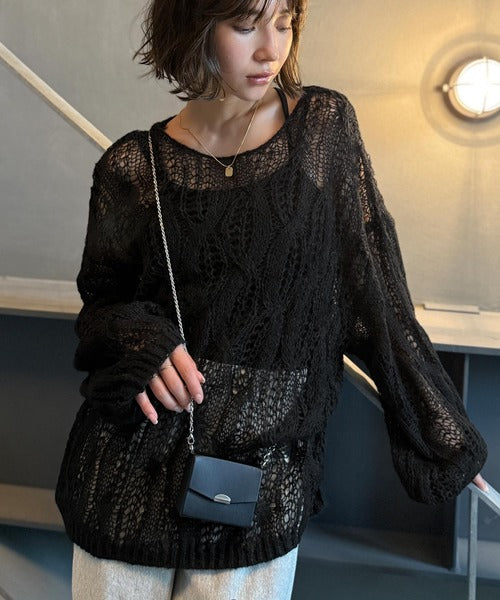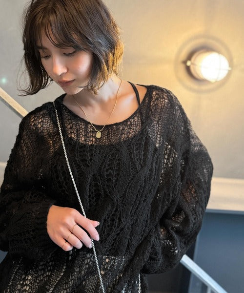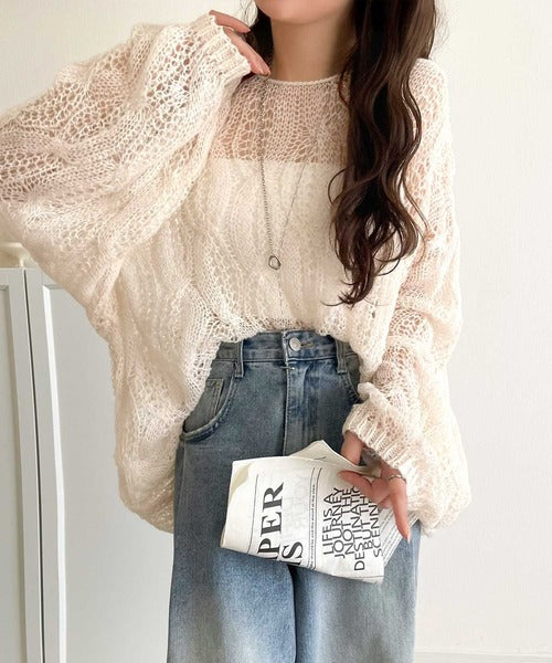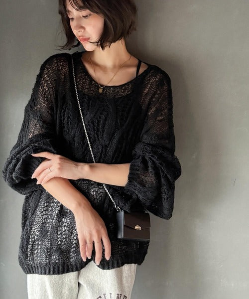 透かし編みのケーブルデザインが特徴のオーバーサイズニット。