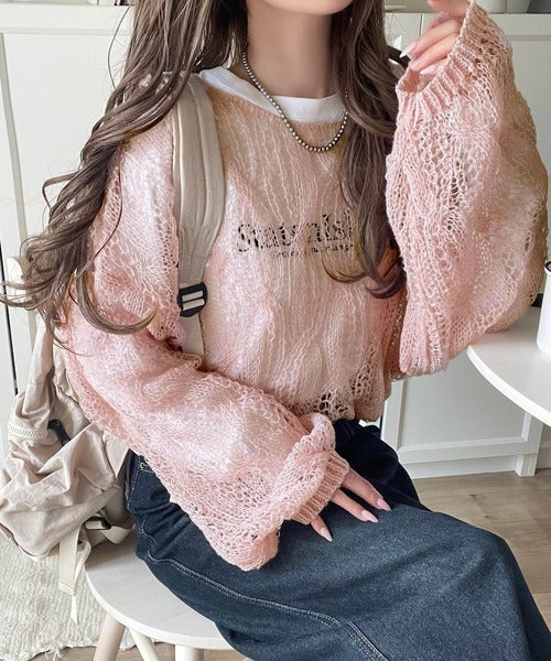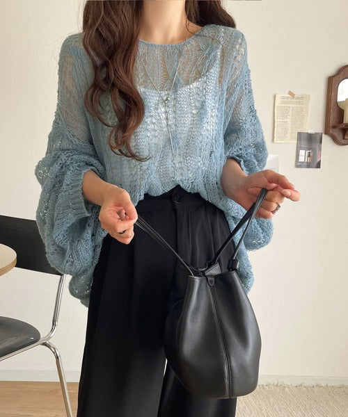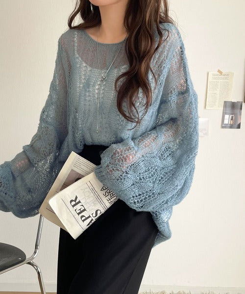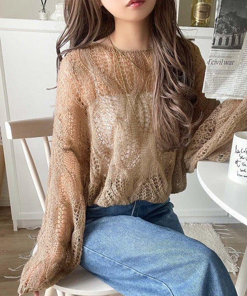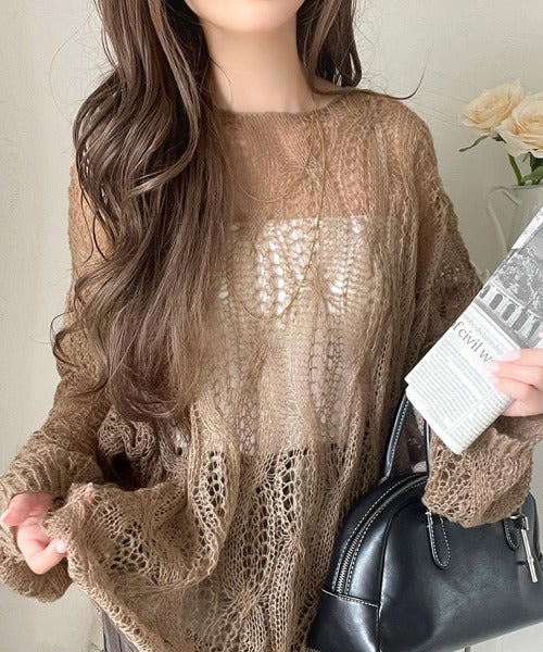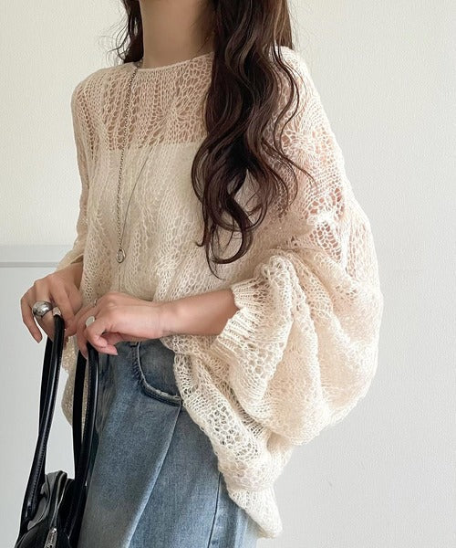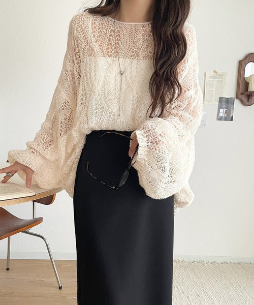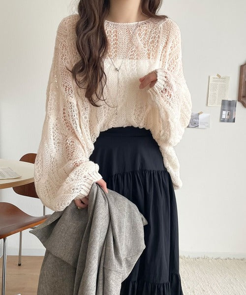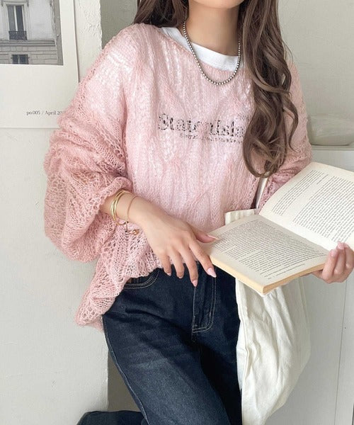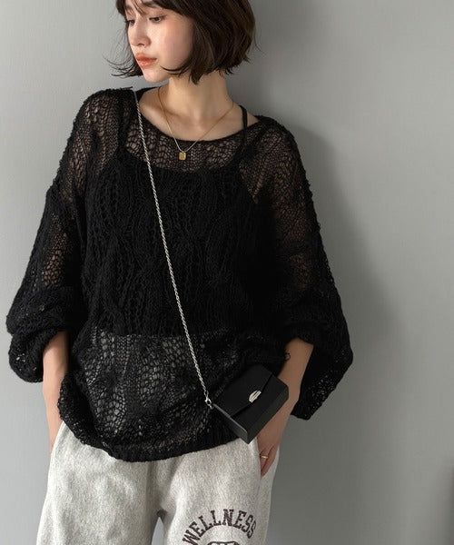 透かし編みのケーブルデザインが特徴のオーバーサイズニット。