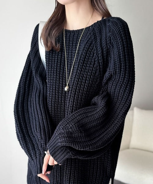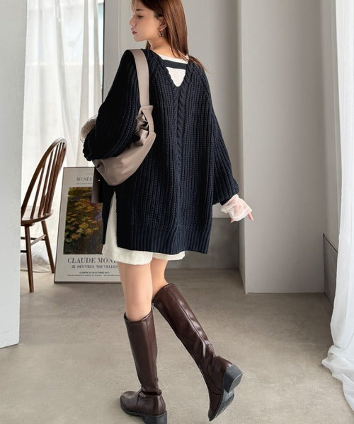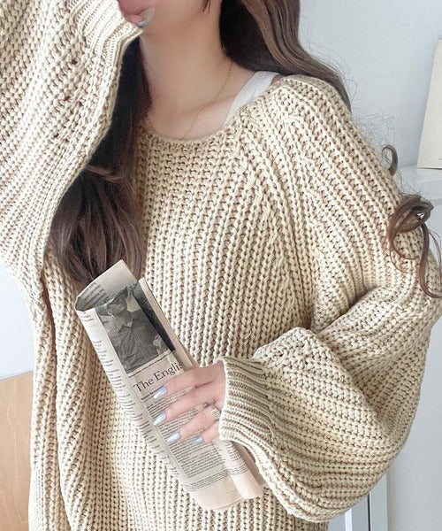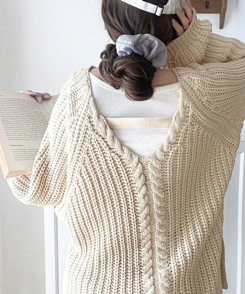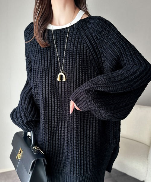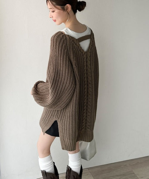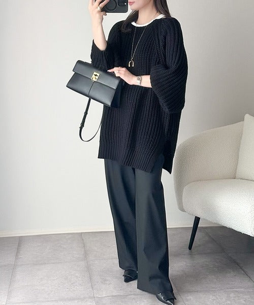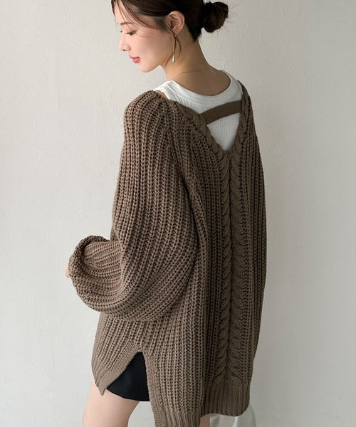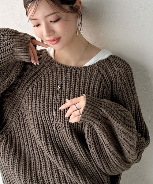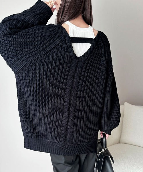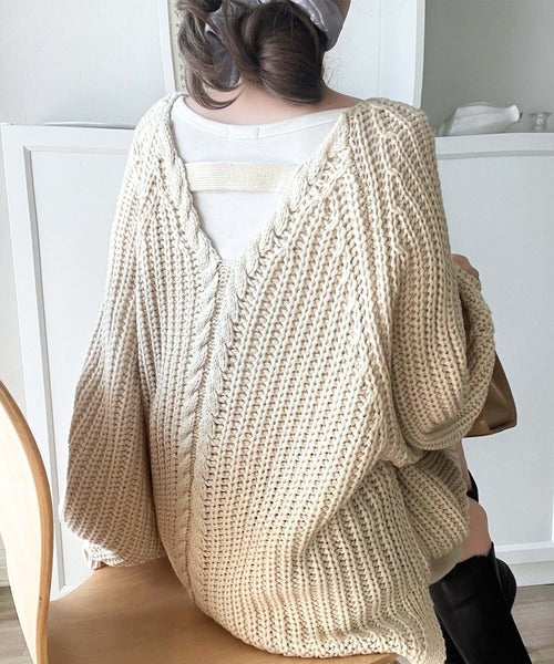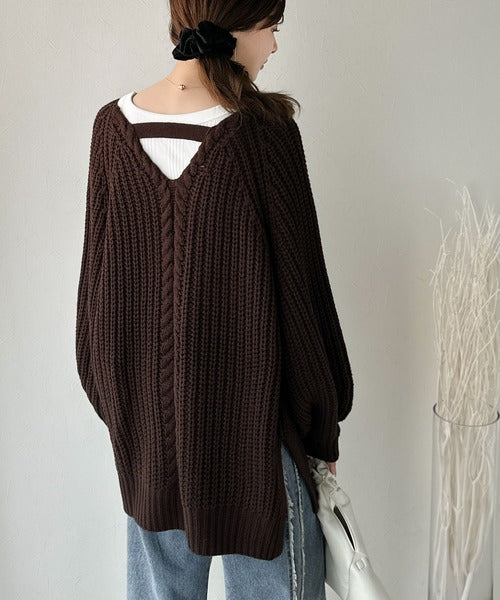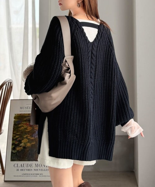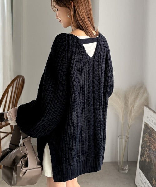 後ろ姿まで抜け感UP♪ケーブル編みバックデザイン×ルース片畦ビッグラグランニット ce1050324