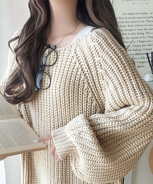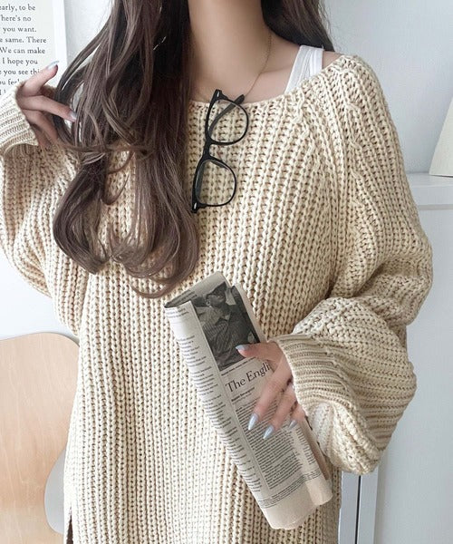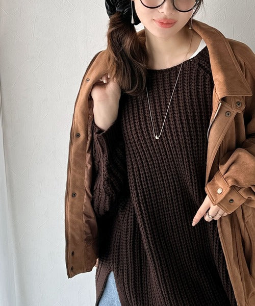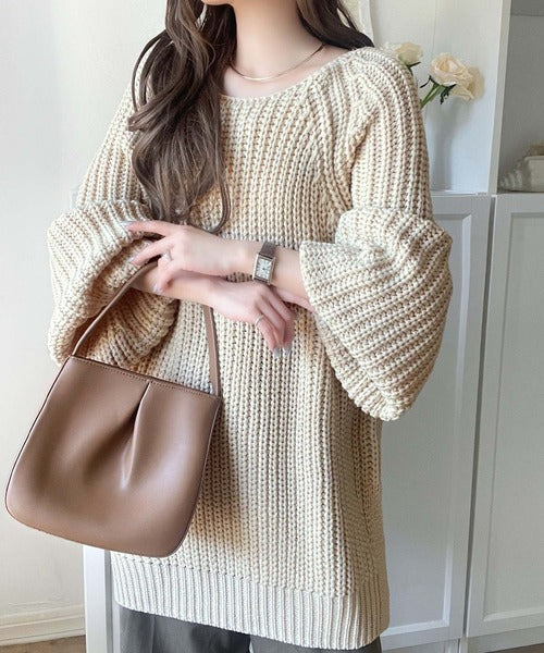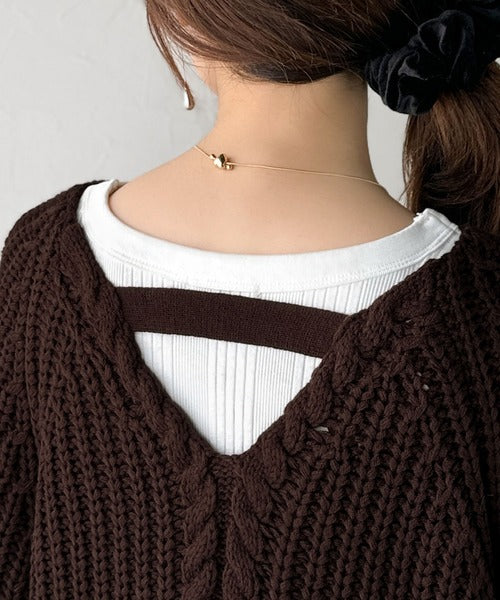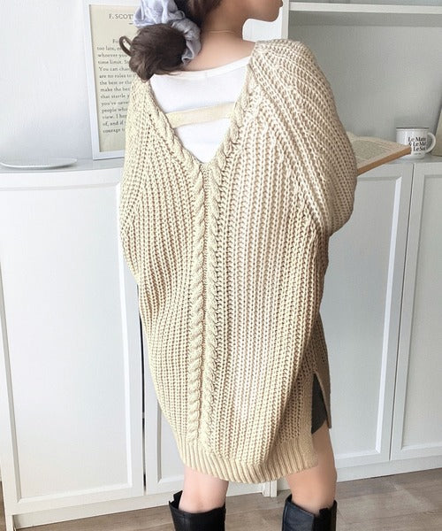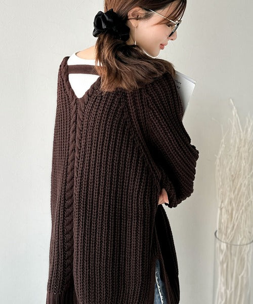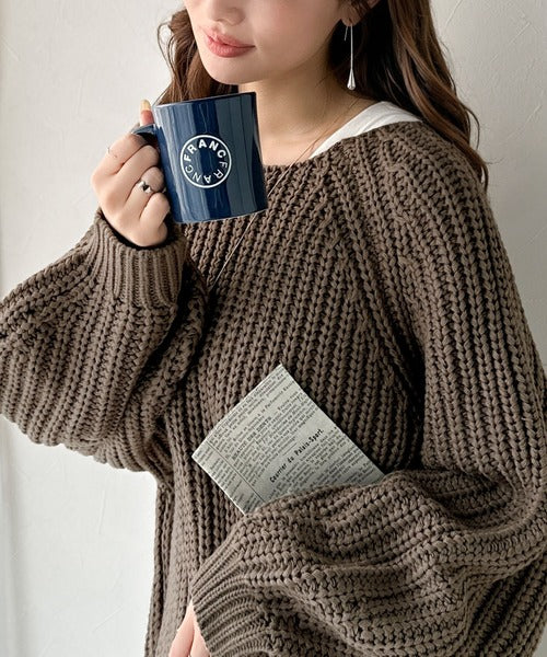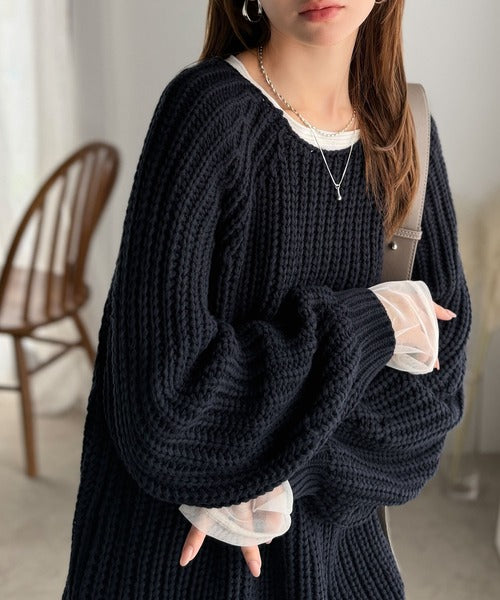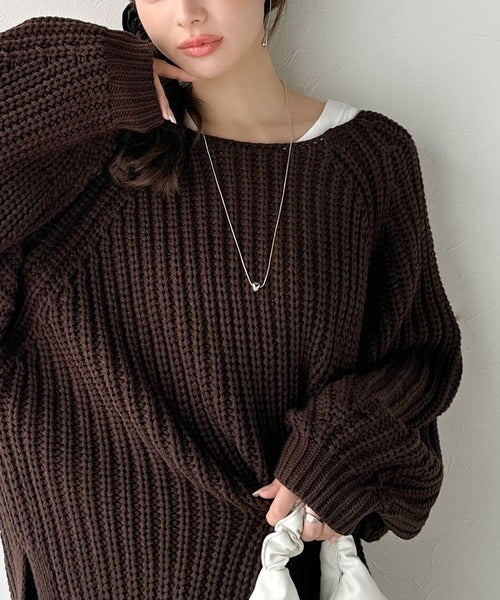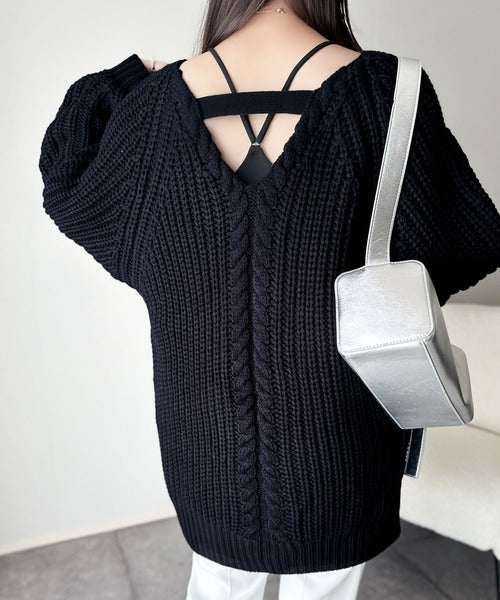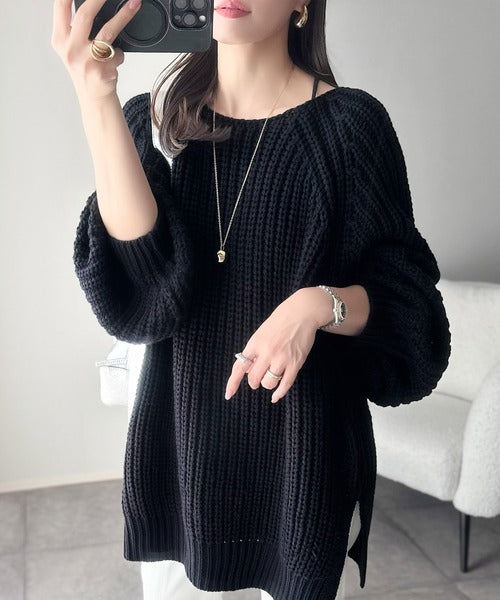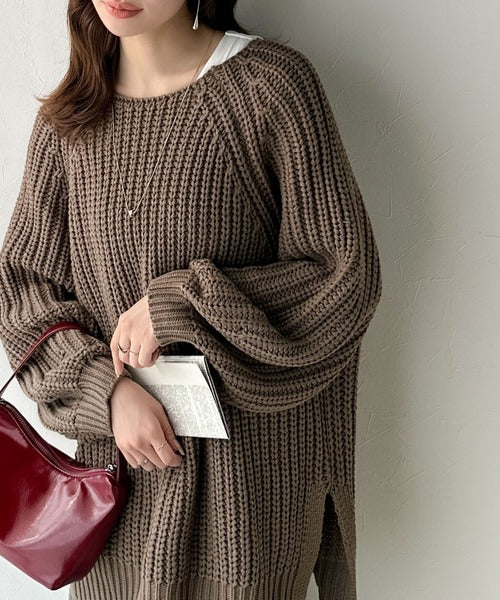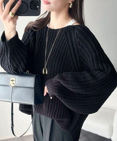 後ろ姿まで抜け感UP♪ケーブル編みバックデザイン×ルース片畦ビッグラグランニット ce1050324