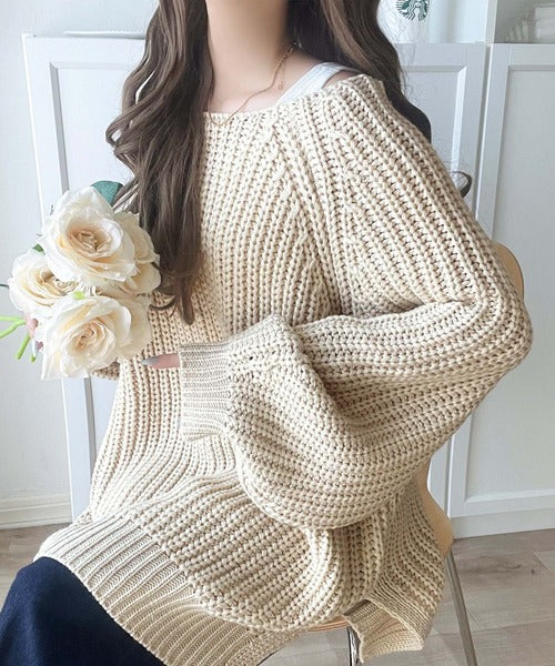 ざっくり感のあるルース片畦編みで抜け感たっぷり♪