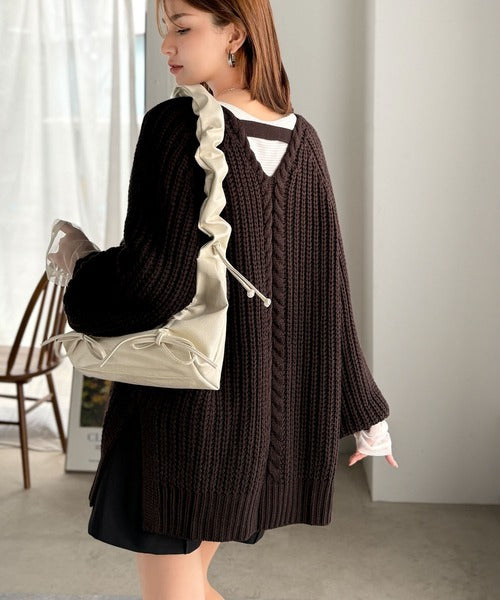 バックのケーブル編みが後ろ姿まで、お洒落見えポイント♪