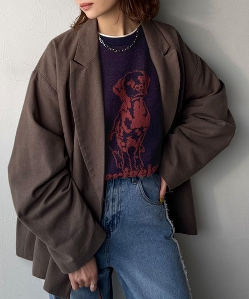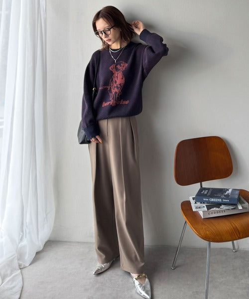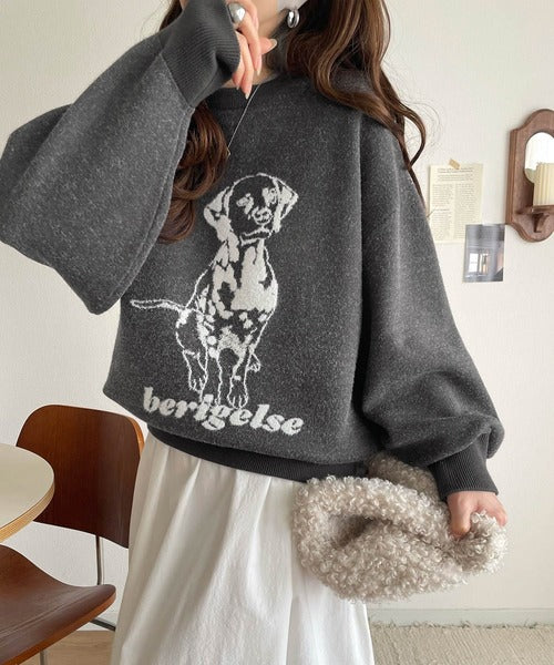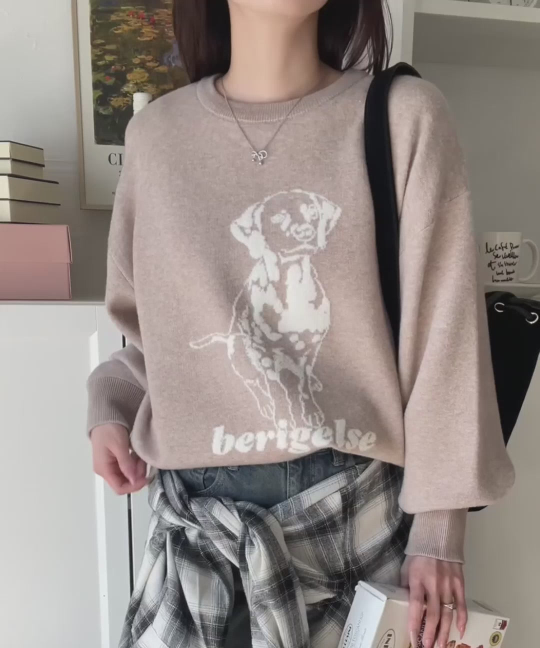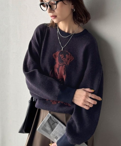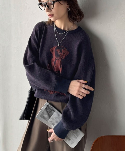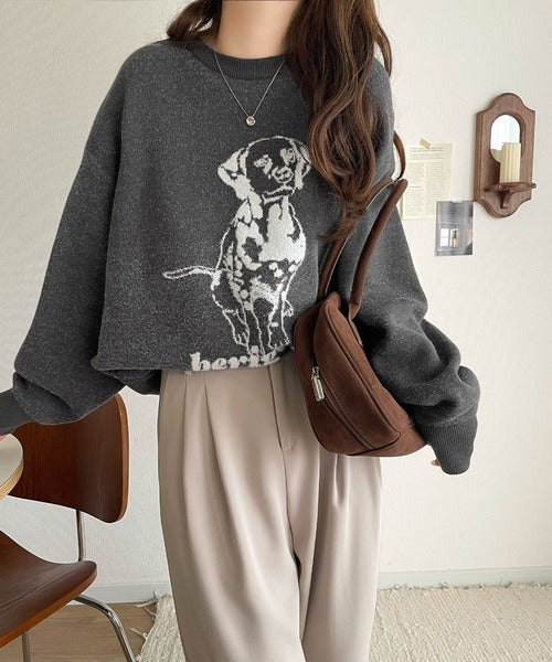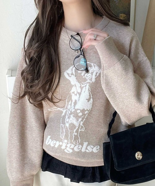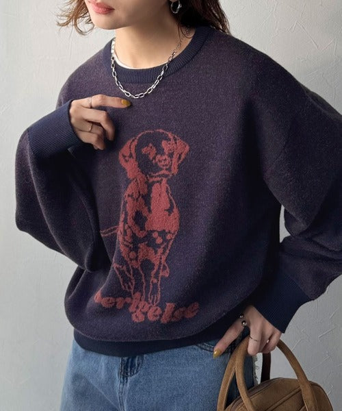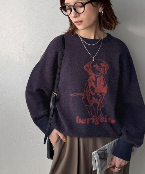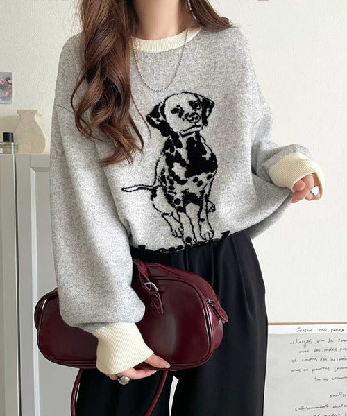 大人可愛い配色のダルメシアン柄が目を惹く、存在感あるジャガードニット。