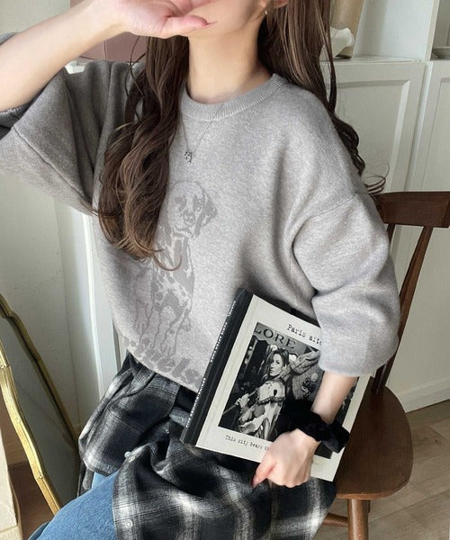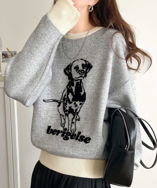 着心地抜群!大人かわいいスタイルに♪ダブルジャガード配色ダルメシアン柄ニット ce1050342