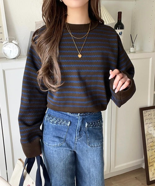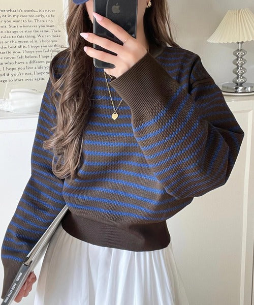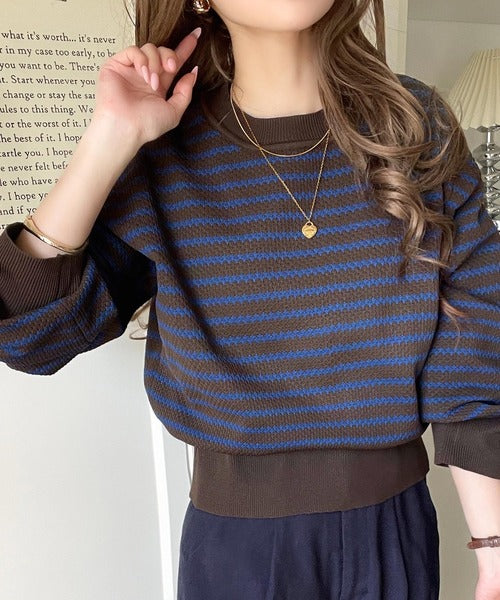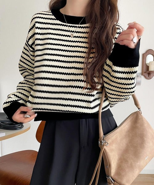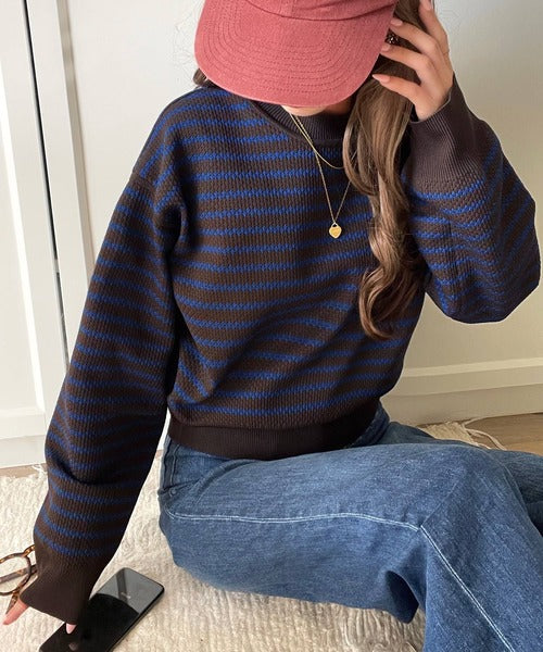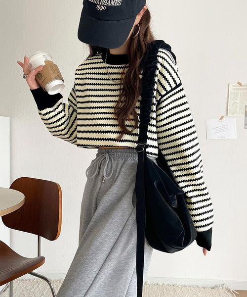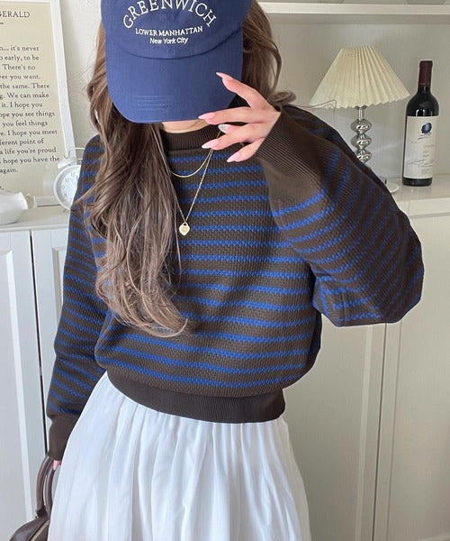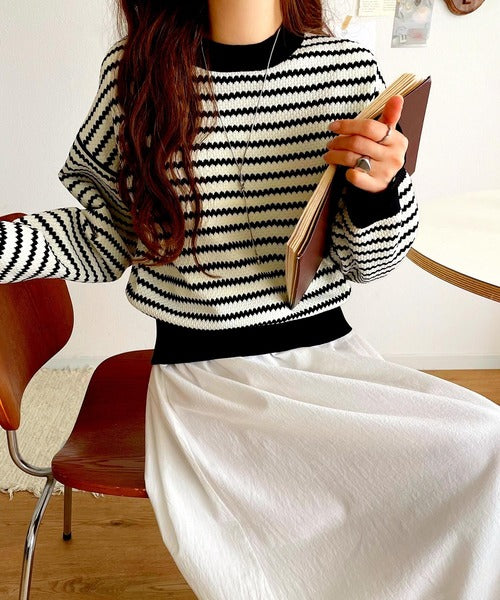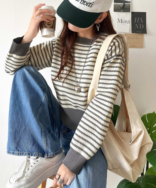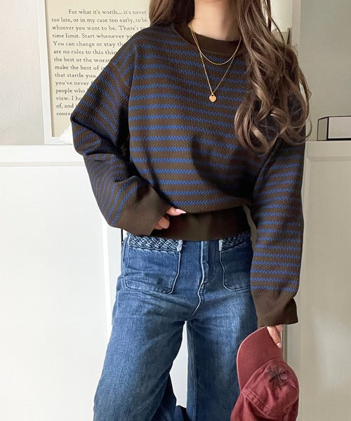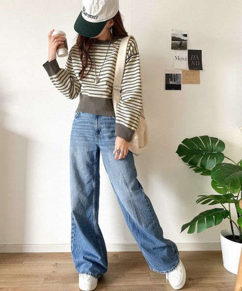 忙しい朝もサッと着るだけでお洒落見えする「太リブニット」。