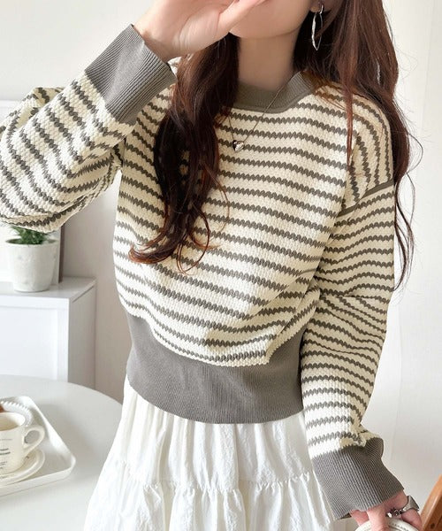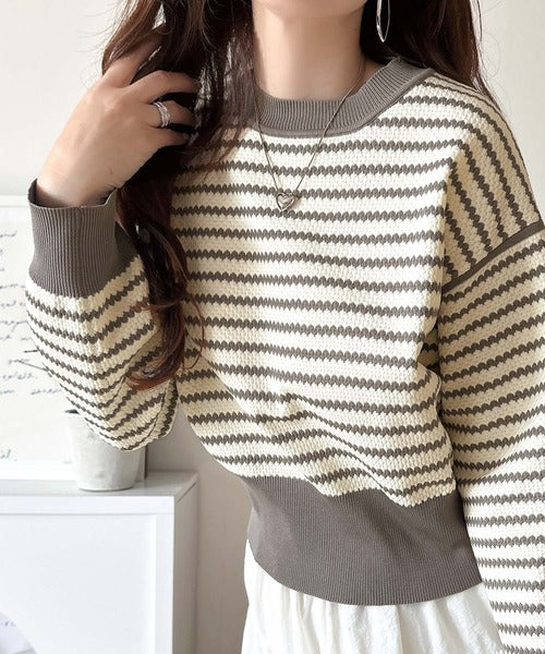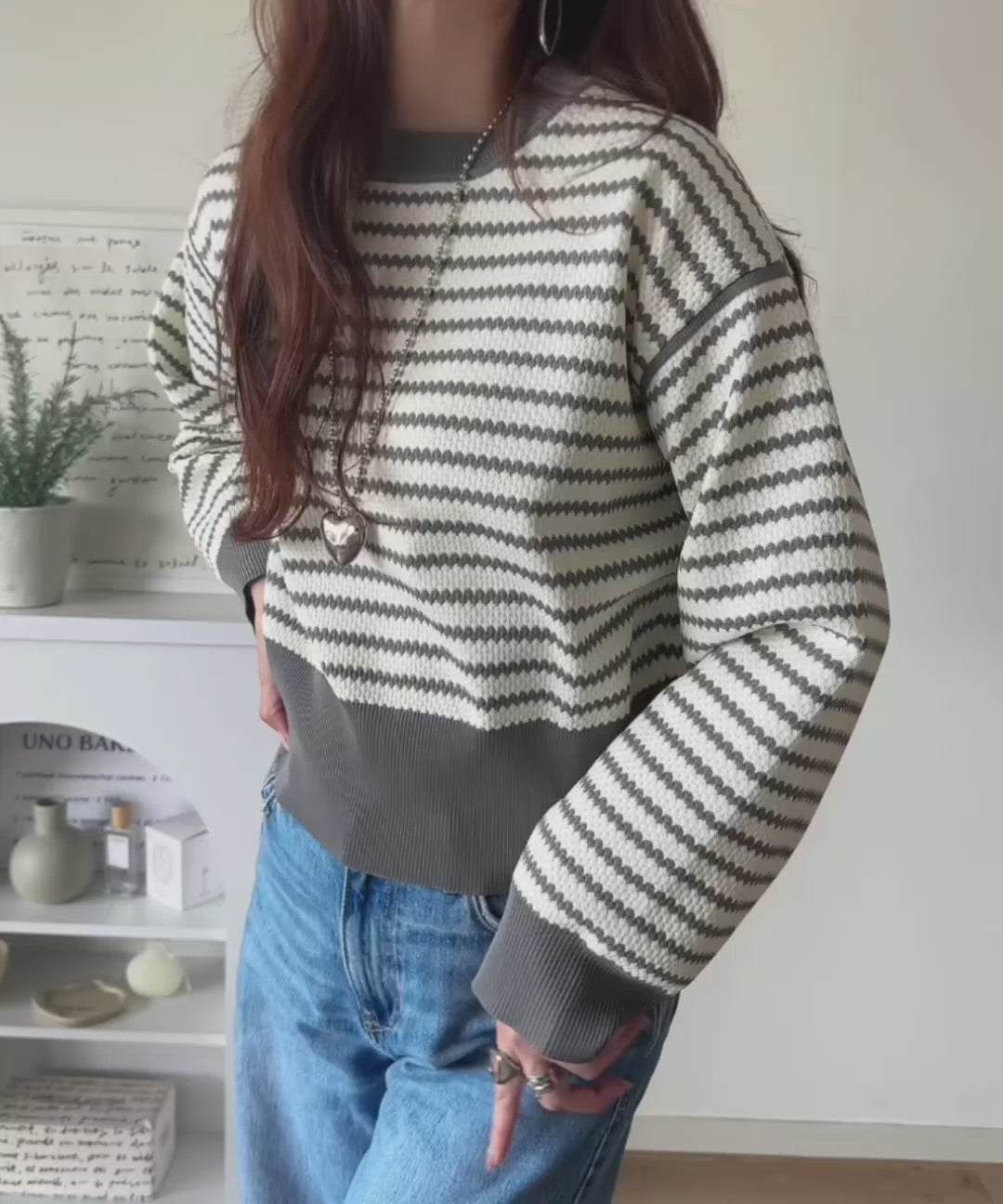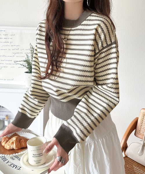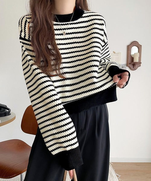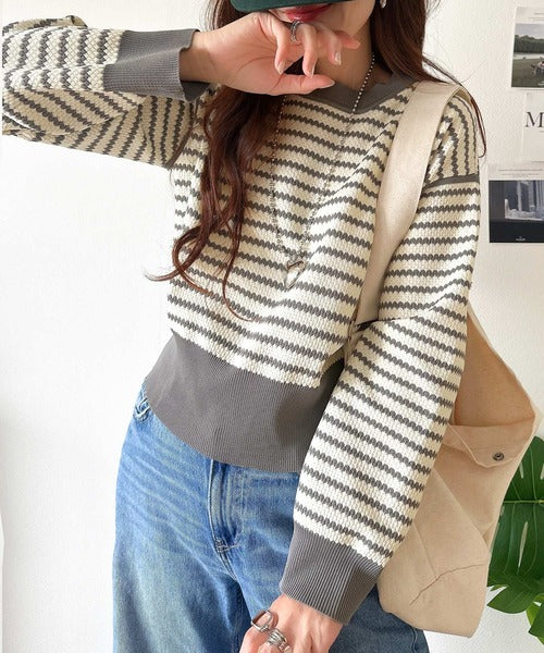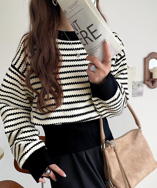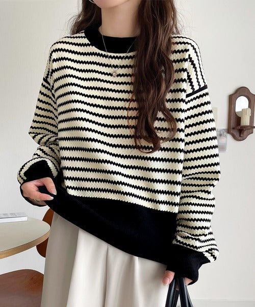 忙しい朝もサッと着るだけでお洒落見えする「太リブニット」。