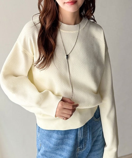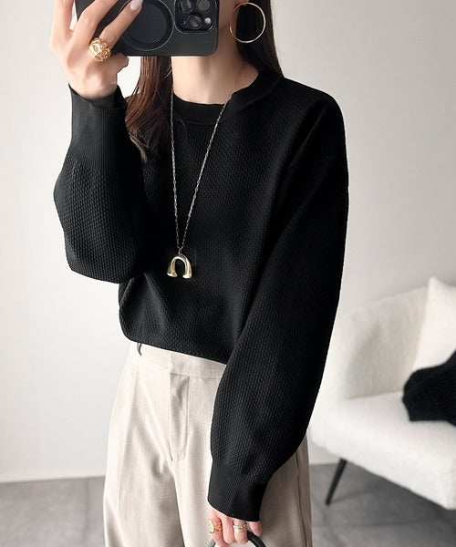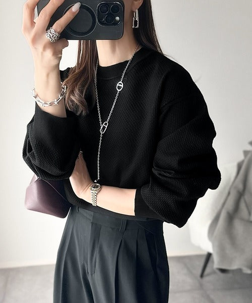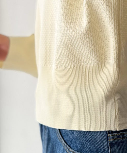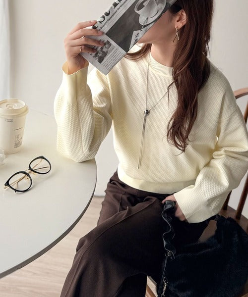 程よい厚みと伸縮性のあるニット素材で、秋冬はもちろん春先まで快適に着ていただけます。