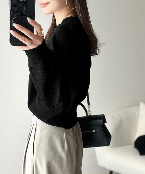 ゆったりとしたシルエットながらも、袖に少しボリュームを持たせているので、女性らしい華奢さを引き立てる効果も◎。