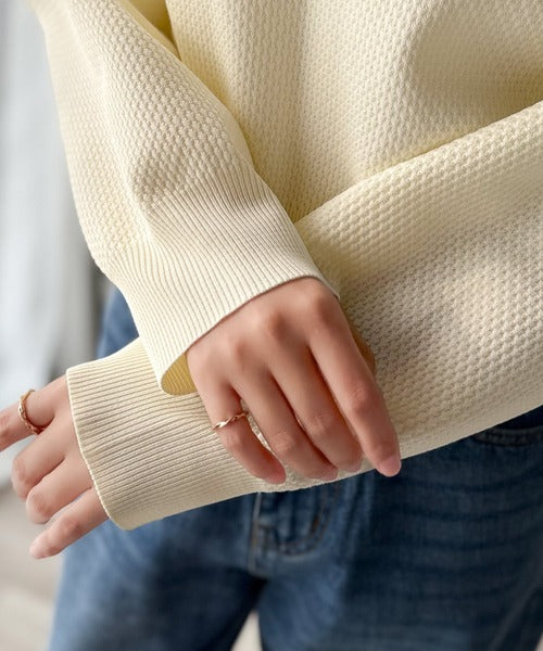 立体感のある編地が特徴の「太リブニット」は、着るだけで大人の余裕を感じさせてくれる一枚。