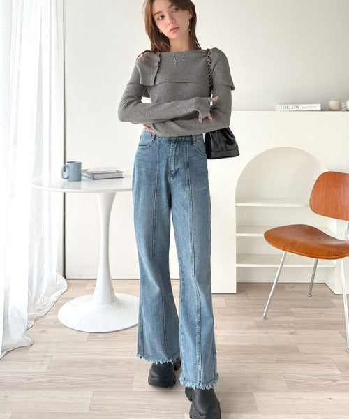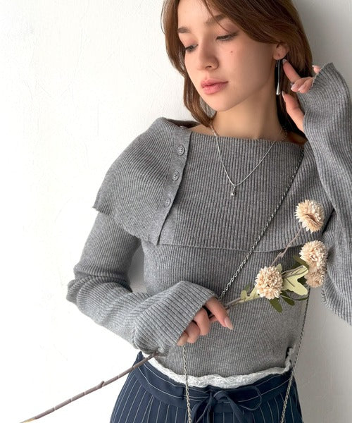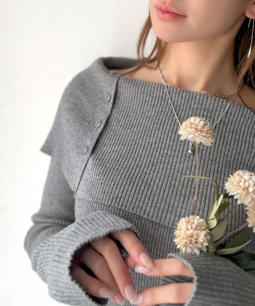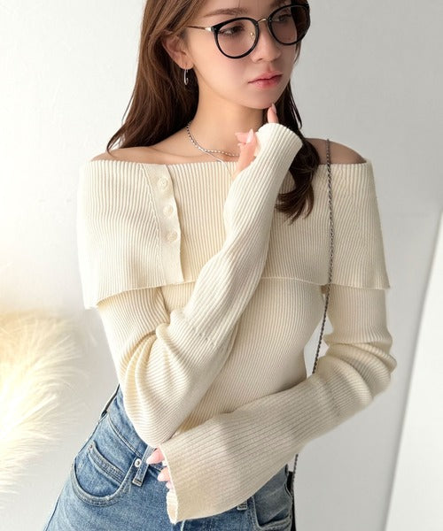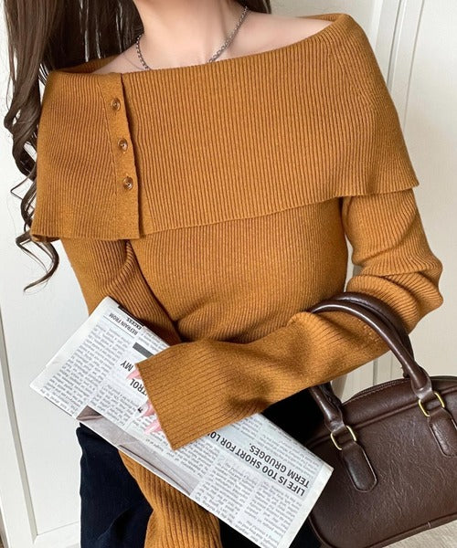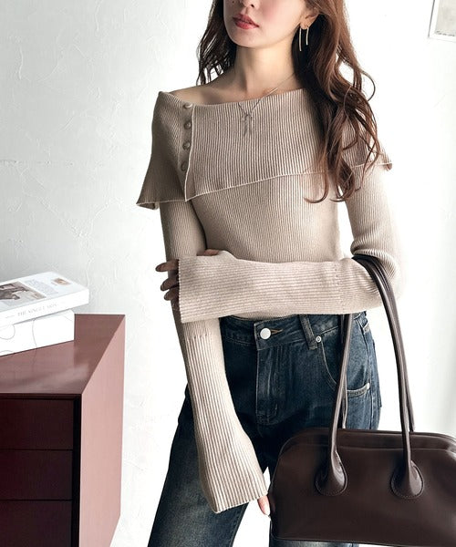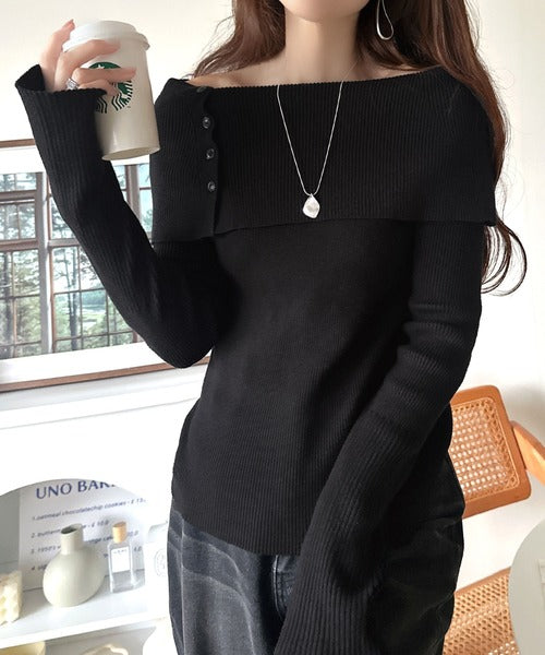 肩まわりの程よい肌見せが魅力のオフショルニット。