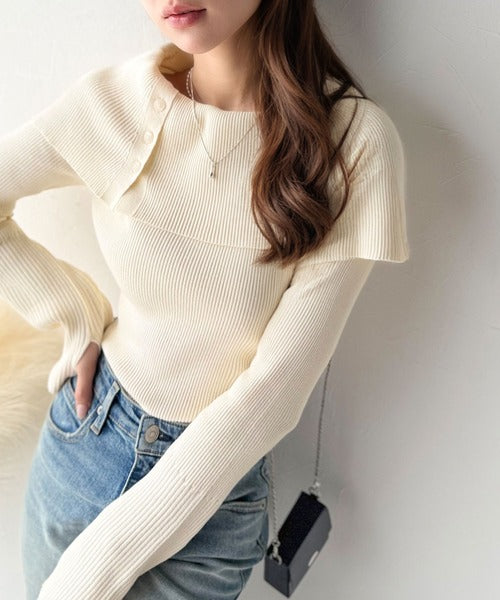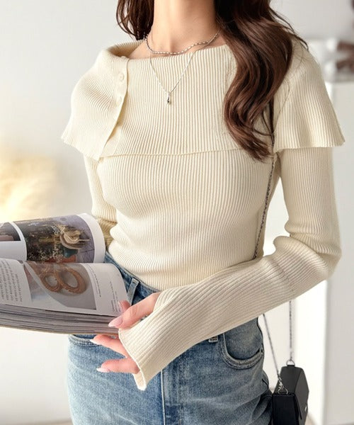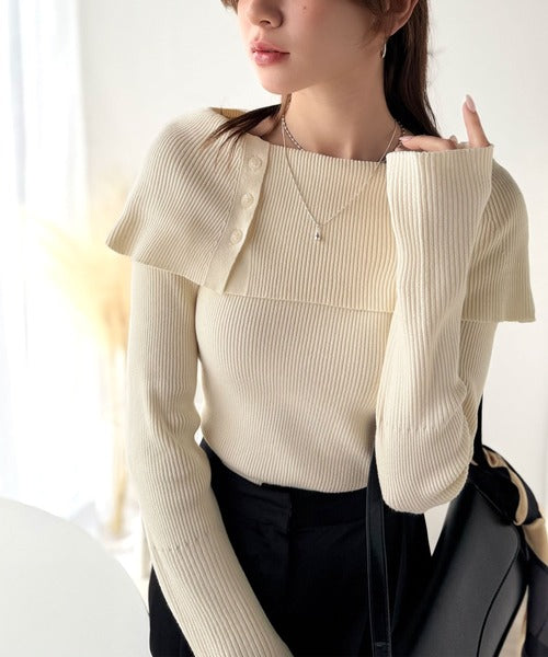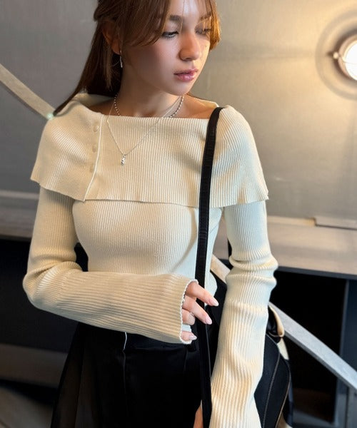 トレンド感のあるオフショルデザインに、リブニットの縦ラインでスタイルアップが叶う大人のためのニットトップス。