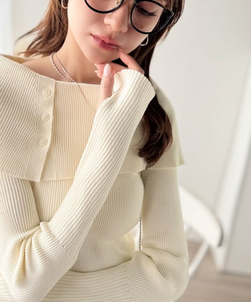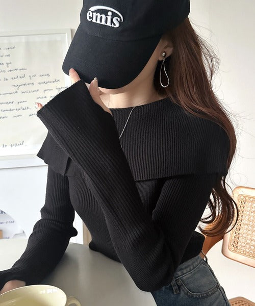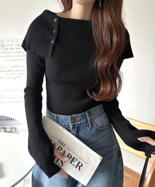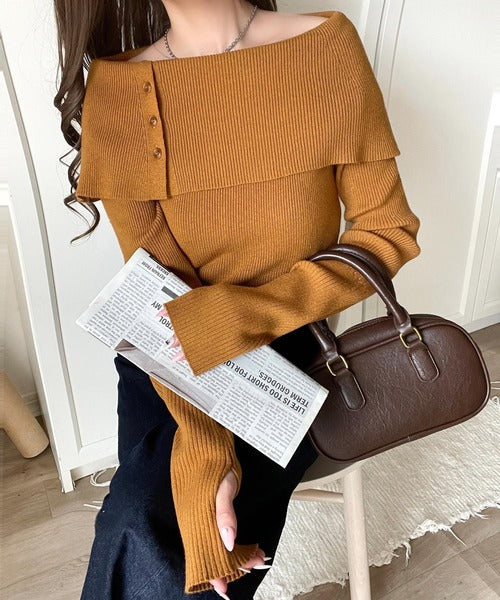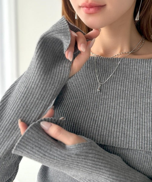 上品&繊細に華奢見え♪サムホール付きオフショルリブ編みニット(長袖) ce1260446