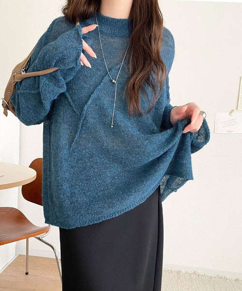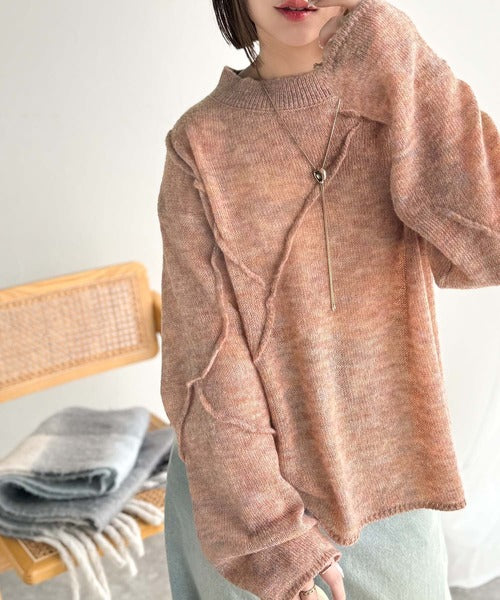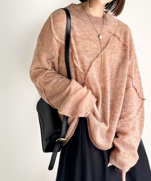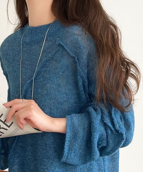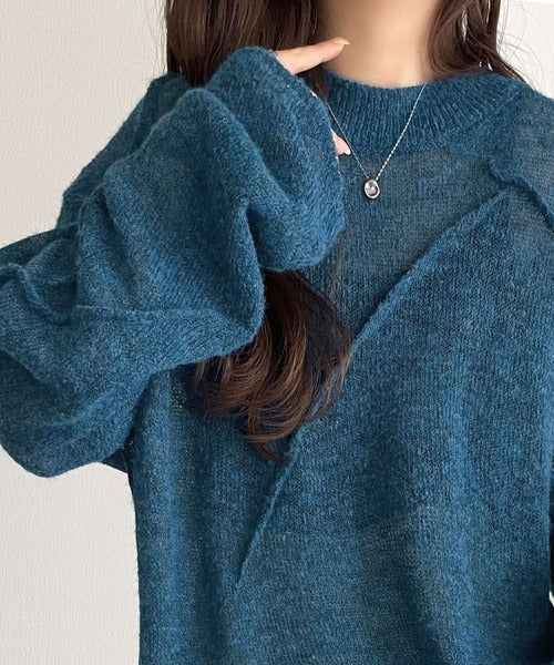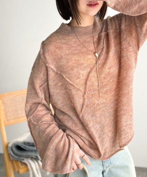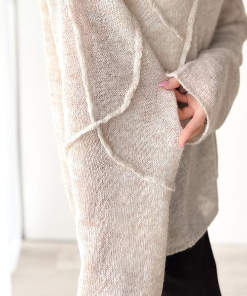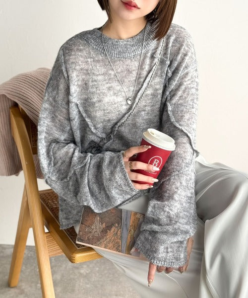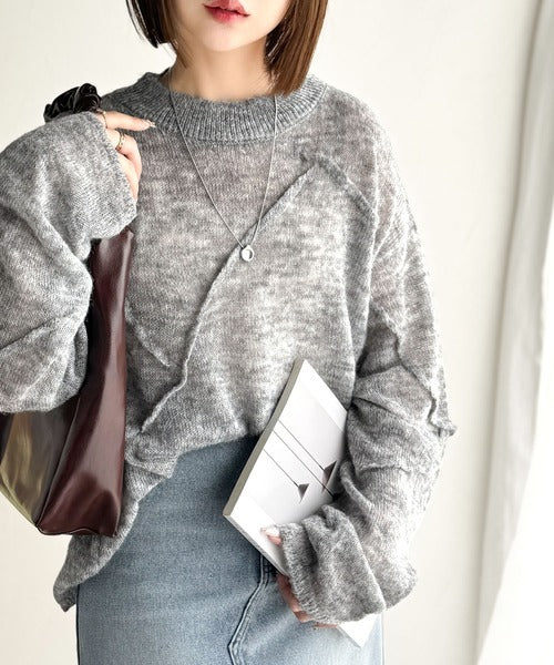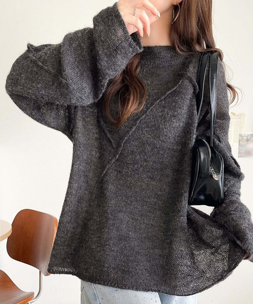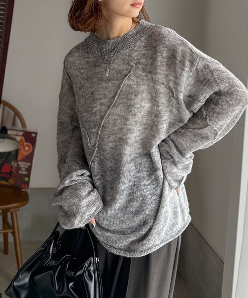 “ゆるっと”が叶える、1秒垢抜け!モヘアタッチシアー変形タック柄ニット(長袖) ce1260450