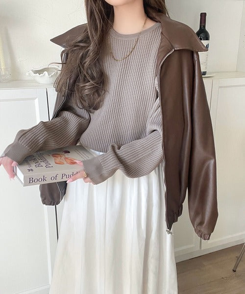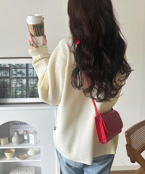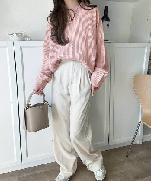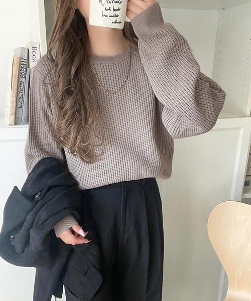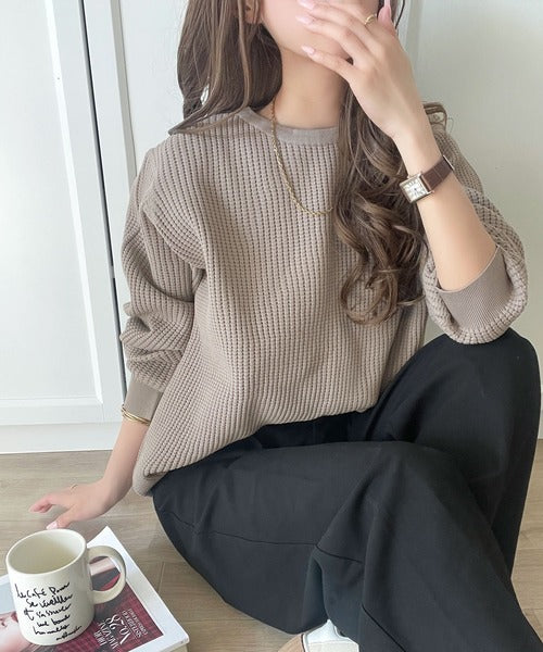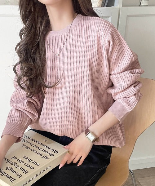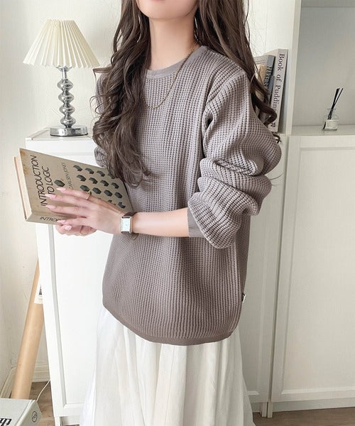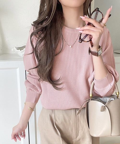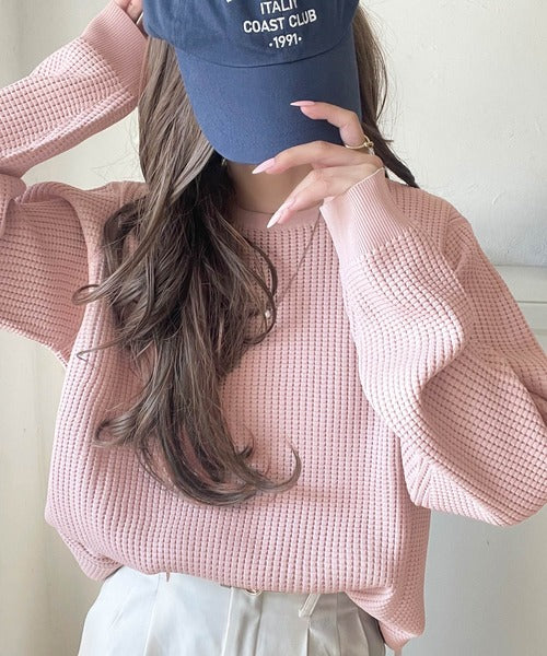 表情のあるワッフル編みが着こなしのアクセントに♪