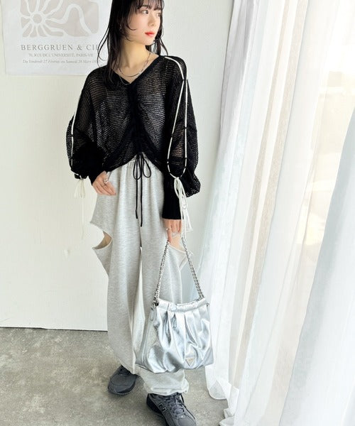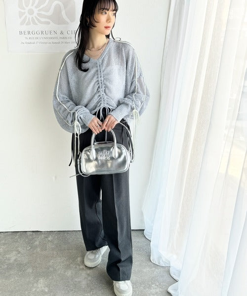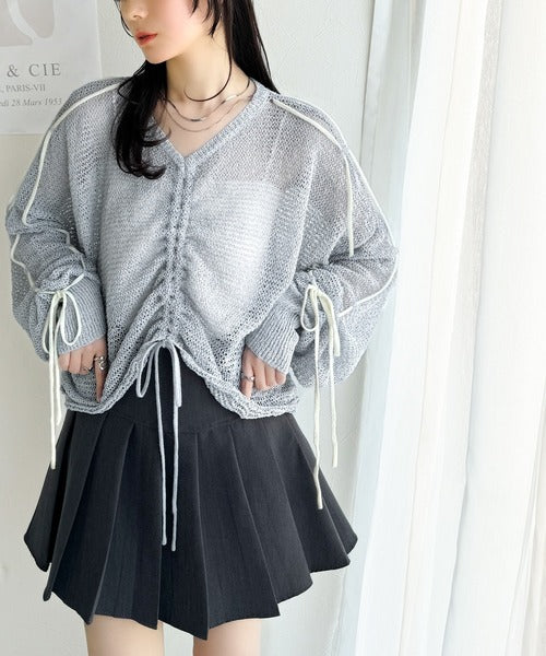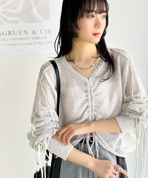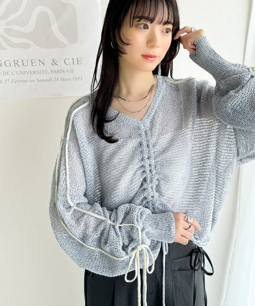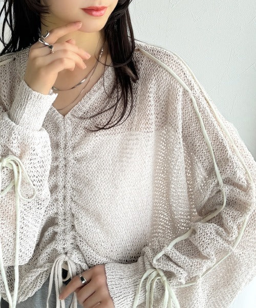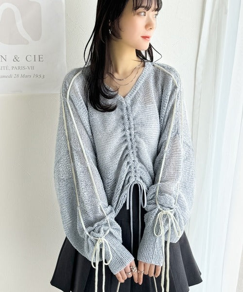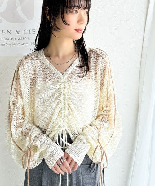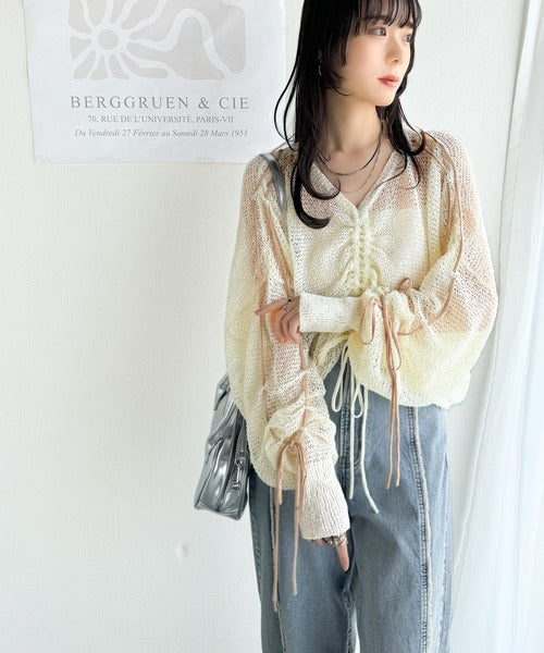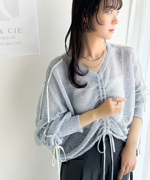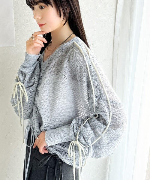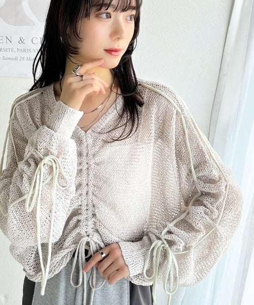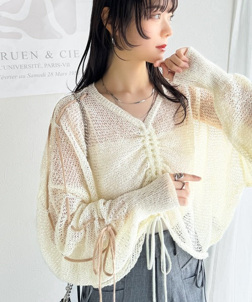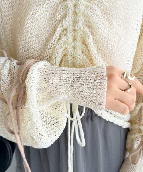 【mily bilet】ルーズな愛らしさで魅了する。透かし編みギャザー仕様リボンプルオーバー(長袖) mi1029102