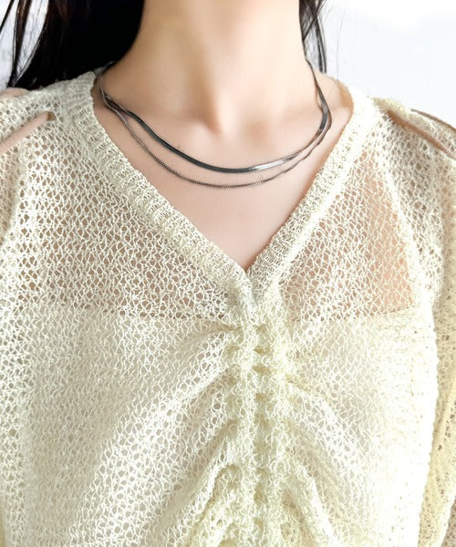 ほどよい透かし編みが、上品な抜け感を演出しつつ、