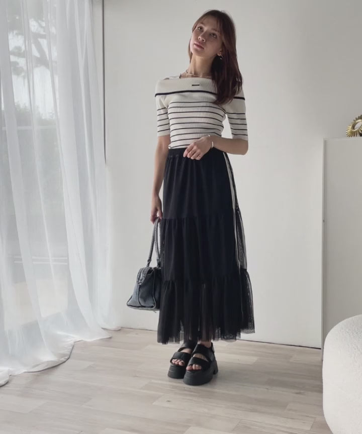 トレンド感溢れるオフショルデザインが、デコルテラインを美しく見せるだけでなく、気温の上がる春夏シーズンに涼しげな印象をプラス!