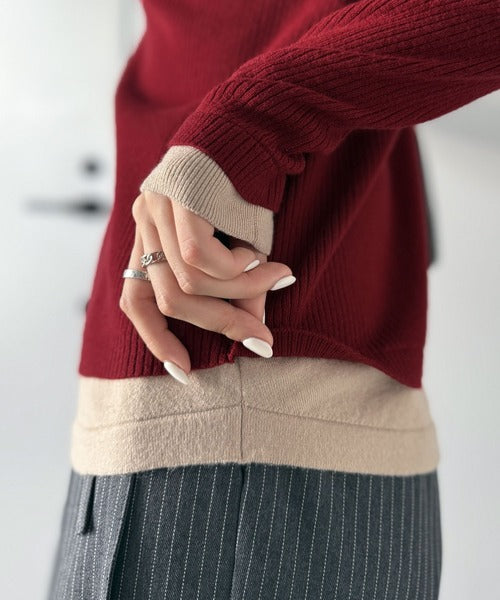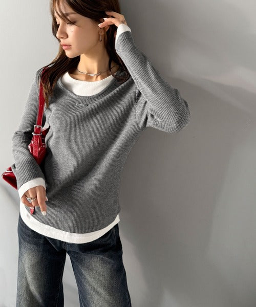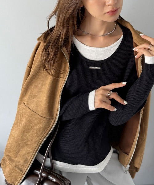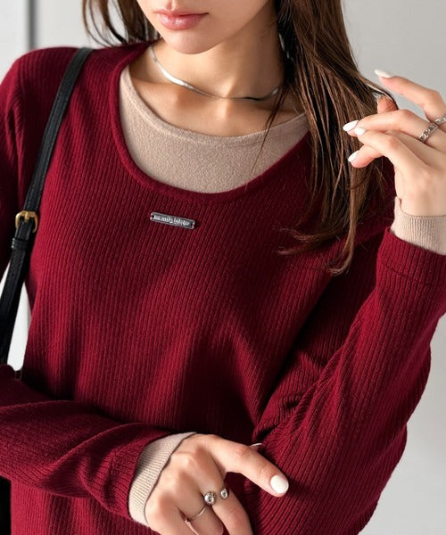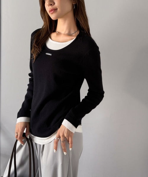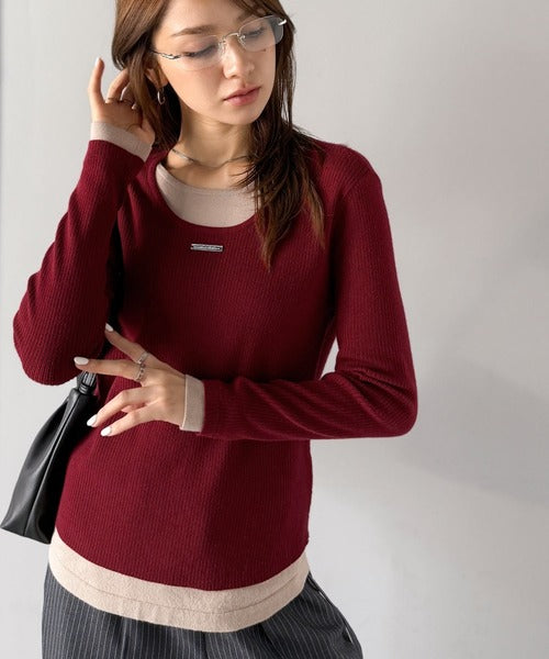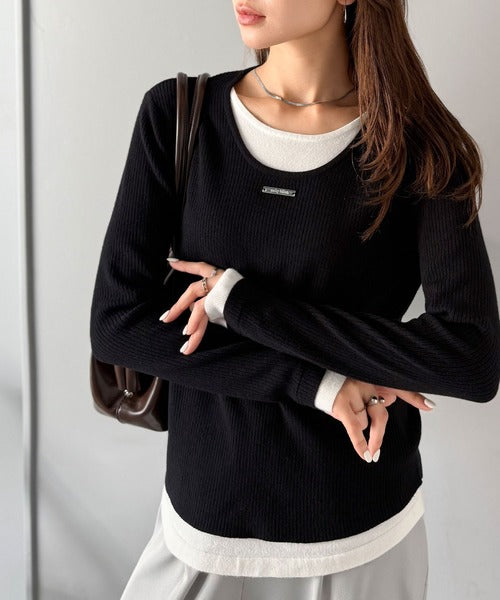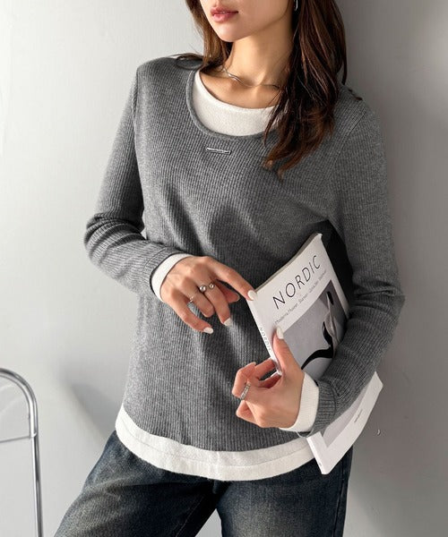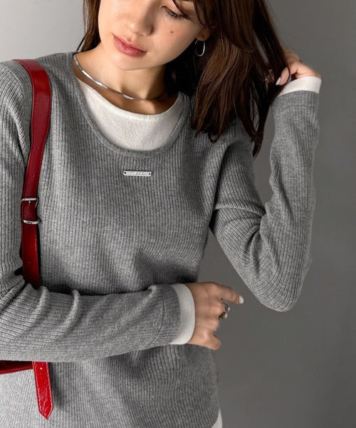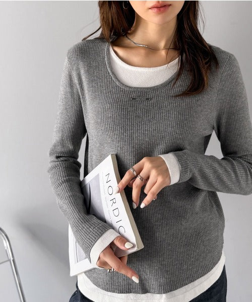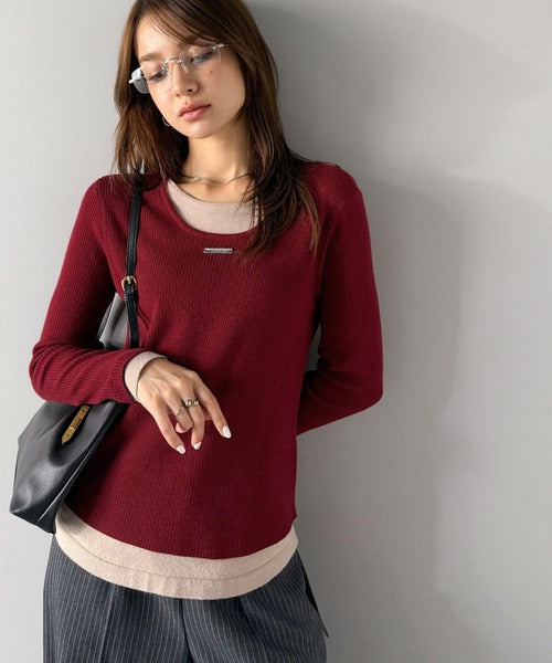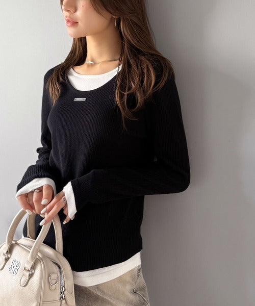 【mily bilet】1枚でおしゃれ上級者に♪プレート使いレイヤードニットプルオーバー(長袖) mi1029136