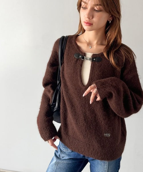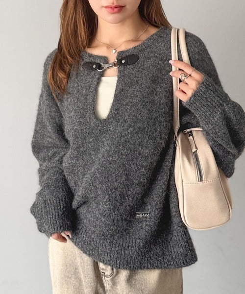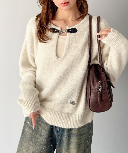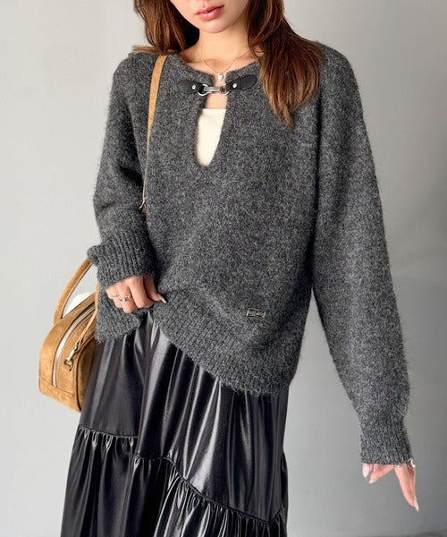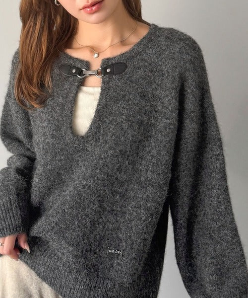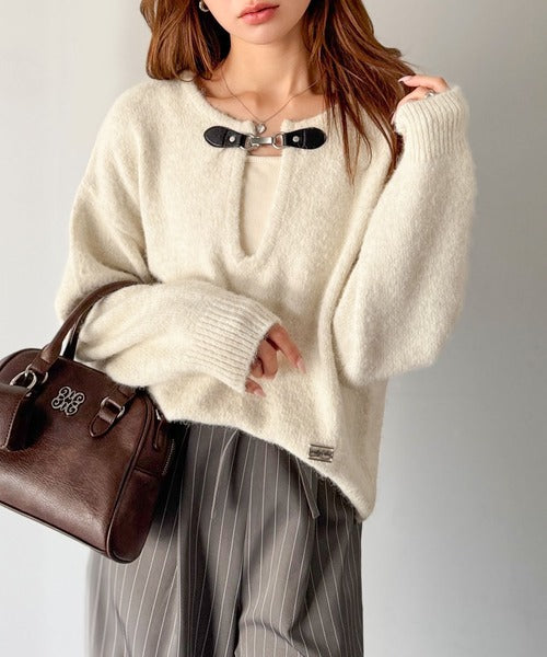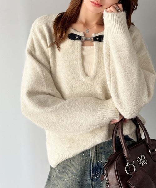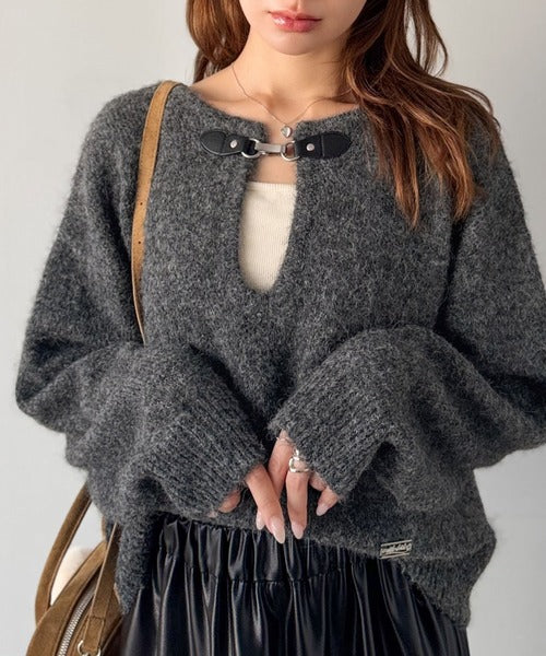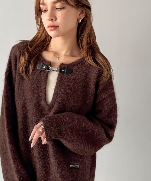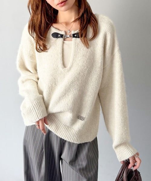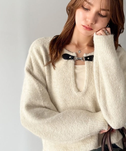 【mily bilet】癒しのモヘアタッチ。バックル使いVネックニット(長袖) mi1029138