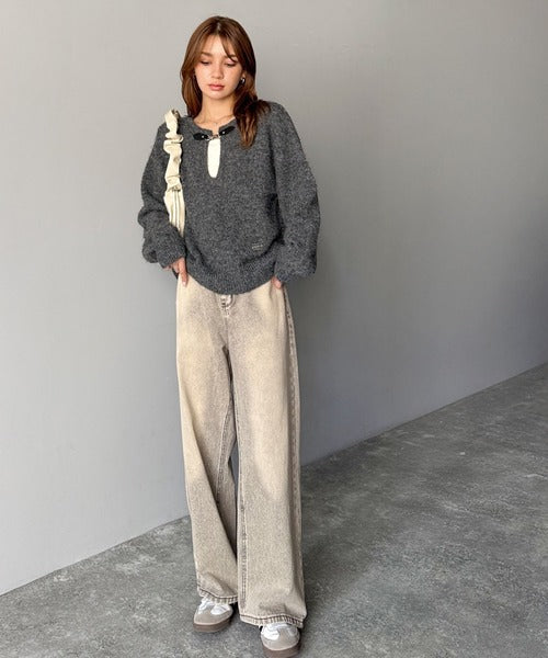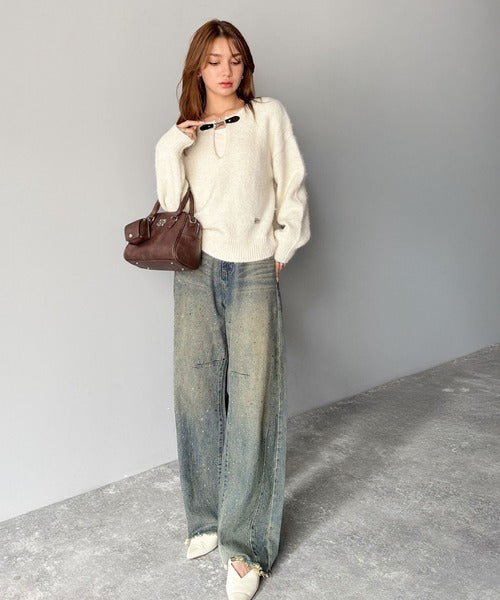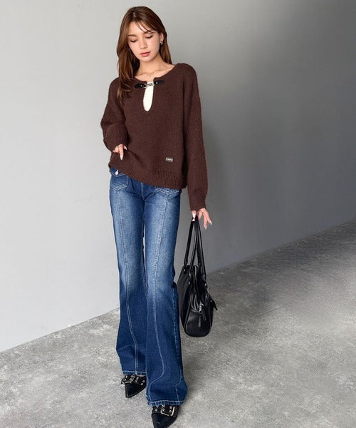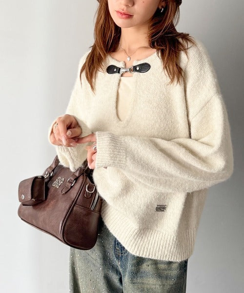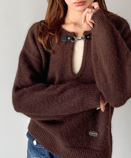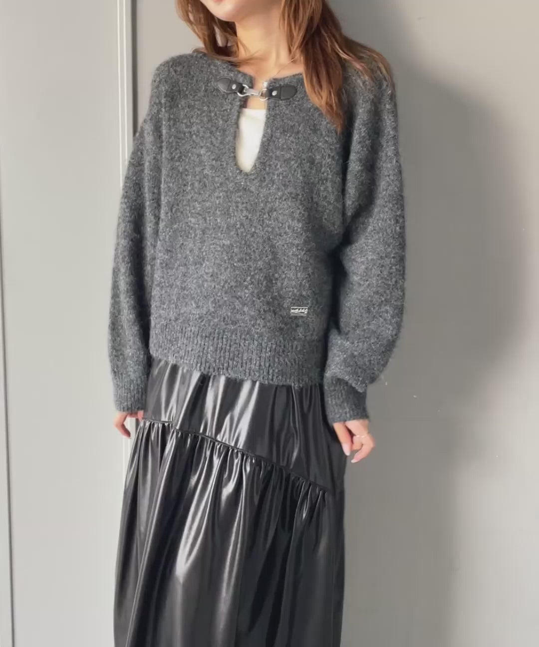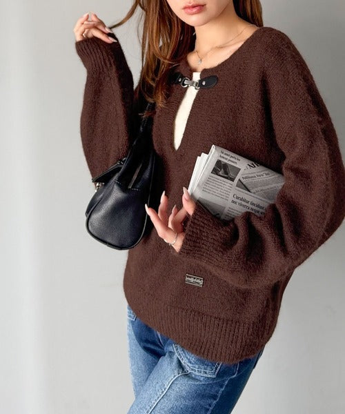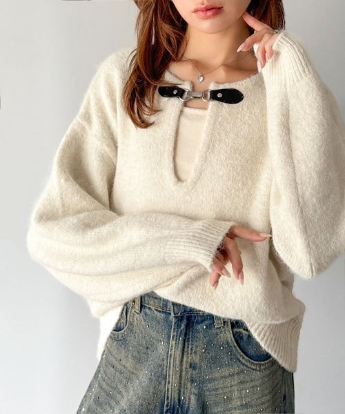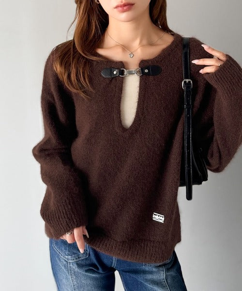 【mily bilet】癒しのモヘアタッチ。バックル使いVネックニット(長袖) mi1029138
