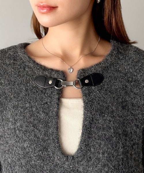レザー風パーツ×メタルバックルのネックデザインがポイント!