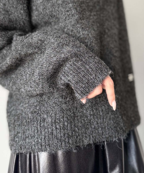 ふんわりとしたモヘアタッチのニット素材を使用したVネックニット。